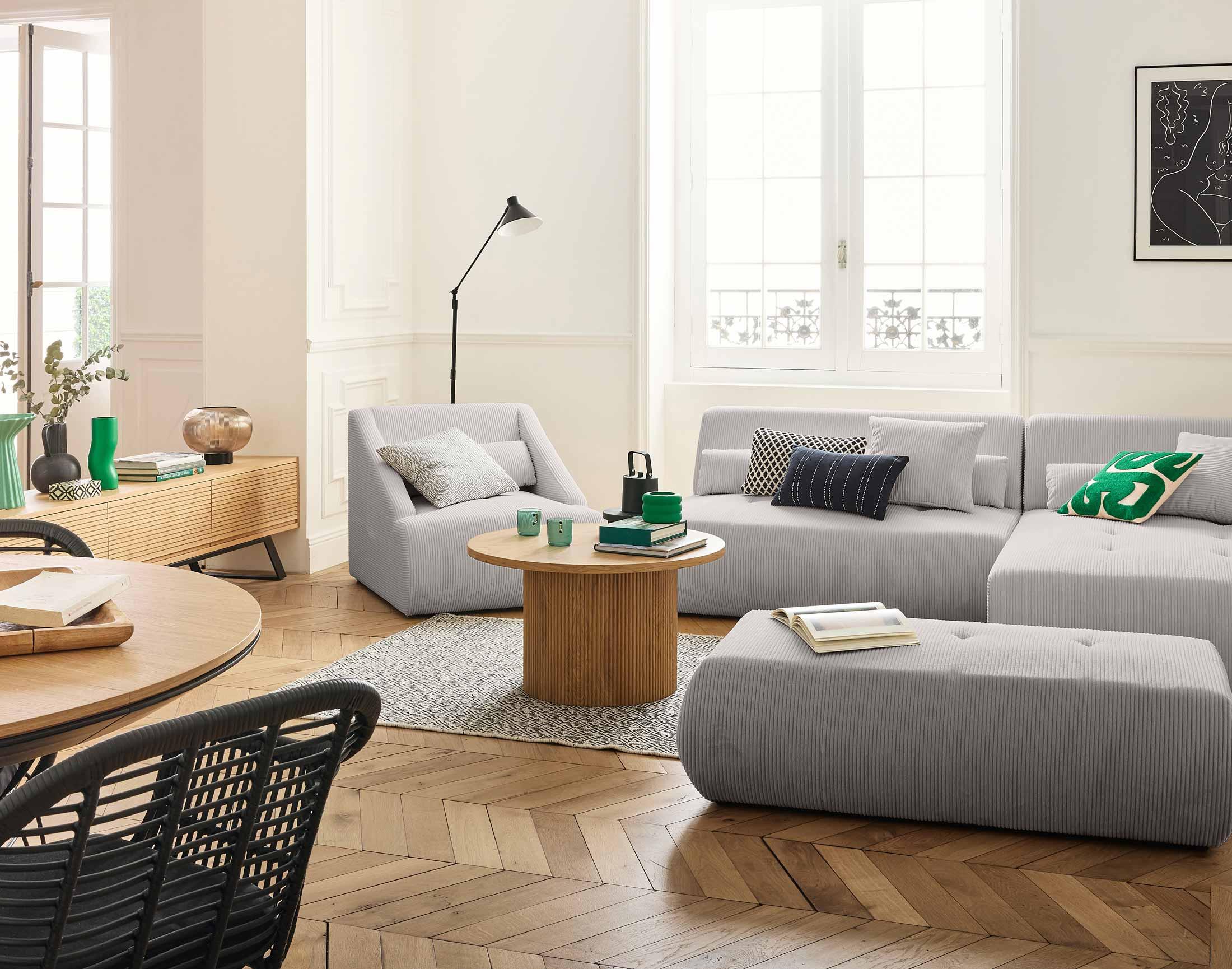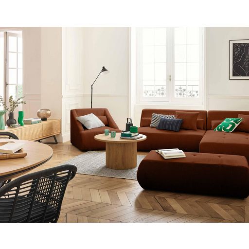 Composé de 2 éléments qui se séparent, le canapé modulable d'angle droit 5 places Onyx saura vous séduire par ses larges dimensions et son design original. Recréer l'espace de votre salon et rendez votre canapé unique en attachant et détachant les éléments modulables. Moderne, il sera la pièce maitresse de votre salon et pourra accueillir vos proches grâce à son espace d'assise généreux. Son absence d'accoudoir et son revêtement en velours côtelé accentuent l'élégance du canapé d'angle Onyx.