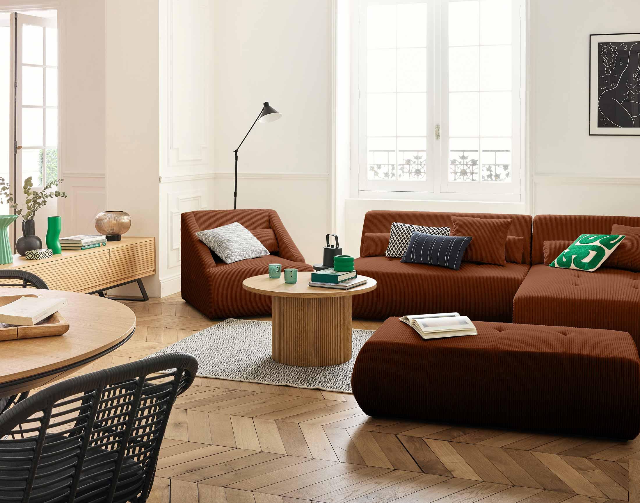 Disponible en plusieurs coloris et doté de coussins et cales-reins décoratifs, ce canapé est à la fois confortable et tendance.