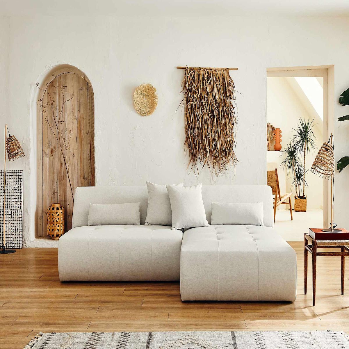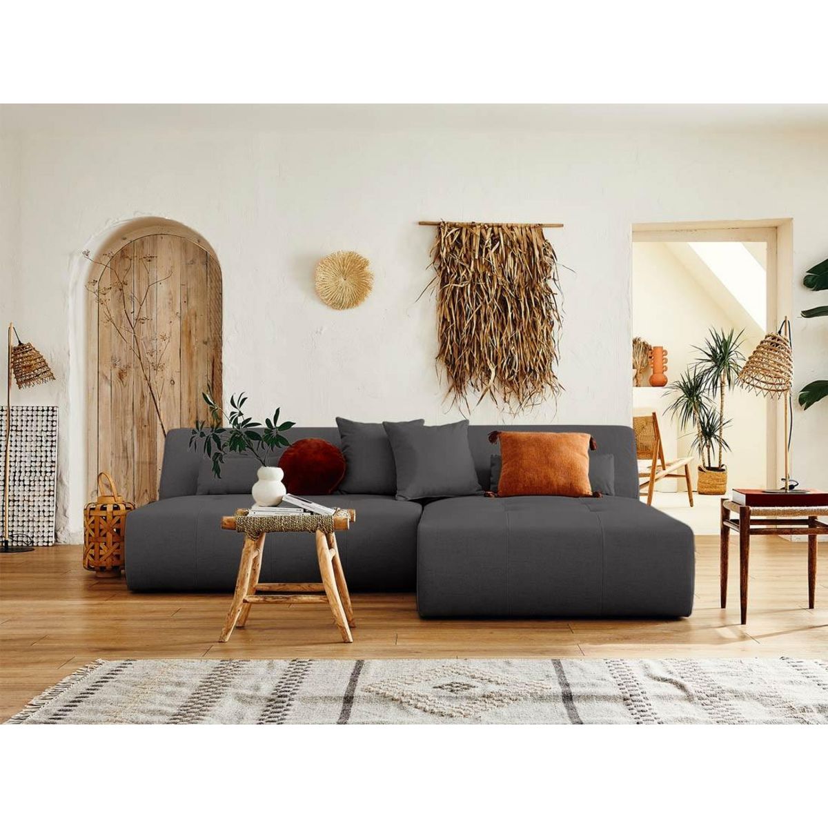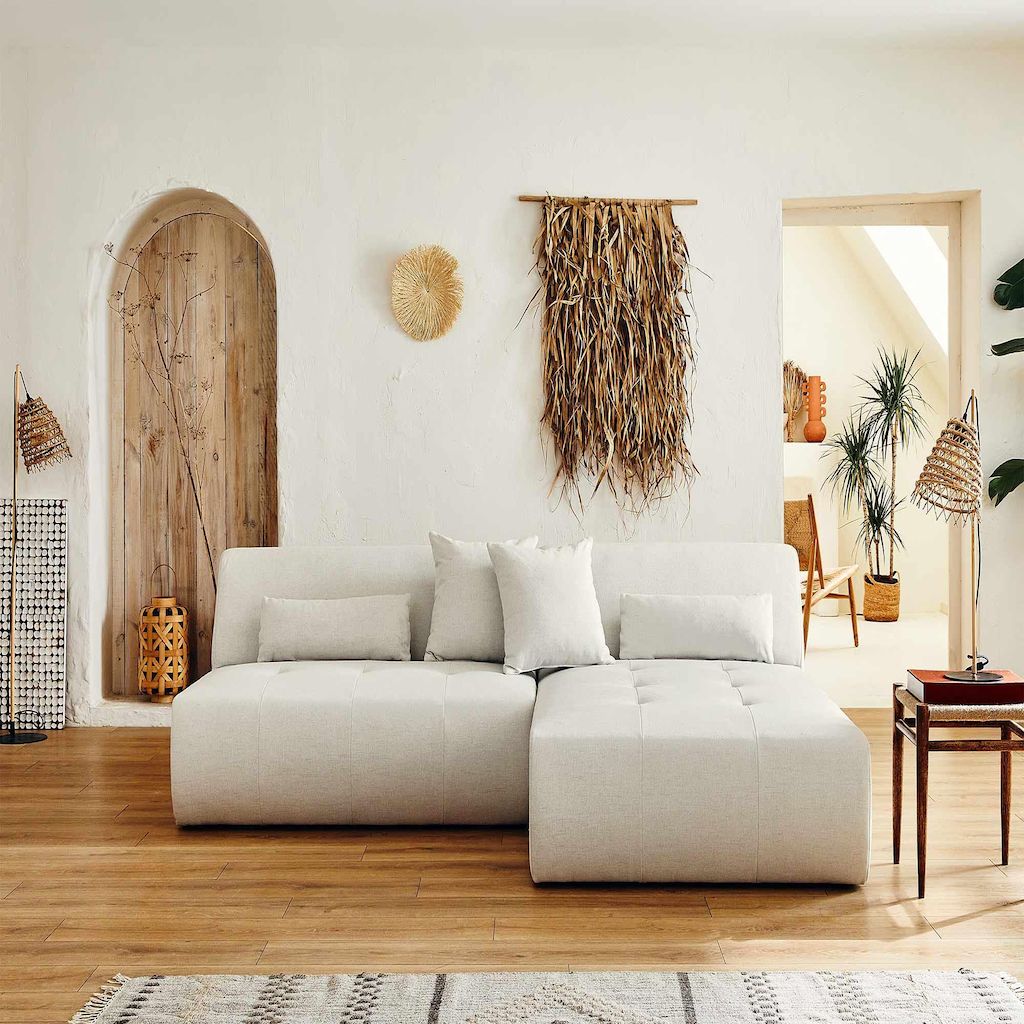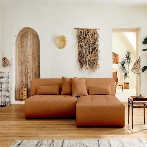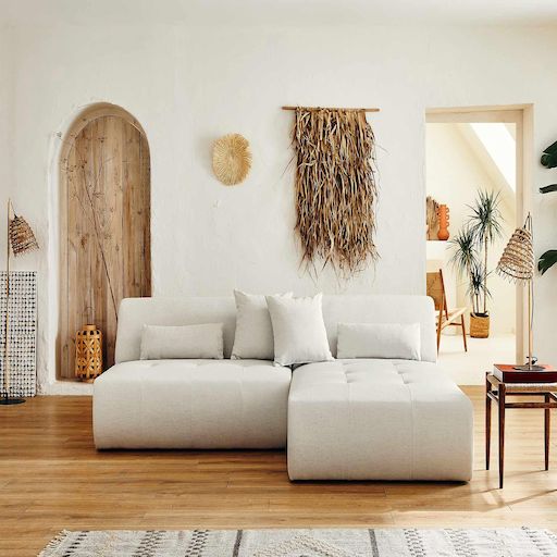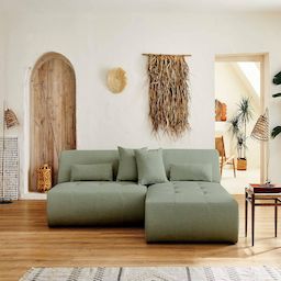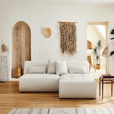 Description techniqueNombre de places : 4Fabrication : EuropePosition de l'angle : Réversible - positionnez l'angle à droite ou à gaucheConvertible : NonCoffre de rangement : NonStructure composée de bois et panneaux de particulesAssise : Mousse polyuréthane de densité 28kg/m3Dossier : Mousse polyuréthane de densité 21kg/m3Suspensions : Ressorts nosagRevêtement en tissu 100% polyesterPieds en plastique noir4 coussins décoratifs inclusPouf non inclusPoids maximum supporté : 350 kgA assembler : en quelques minutes, notice fournie Dimensions du canapéDimensions hors tout : L 240xH75xP167 cmLargeur : 240 cmHauteur : 75 cmProfondeur : 167 cm Hauteur d'assise : 42 cmLargeur d'assise de la partie centrale : 130 cmLargeur d'assise de la méridienne : 110 cmLargeur d'assise totale : 240 cmProfondeur d'assise de la partie centrale : 60 cmProfondeur d'assise de la méridienne : 133 cmHauteur des pieds : 2 cm2 coussins : 45x45 cm2 coussins : 60x20 cmDimensions des colisColis 1 : 112x75x169 cm / 36 kgColis 2 : 135x75x98 cm / 31 kg Lisa Design, c'est plus que du design !Avec confort, durabilité et praticité, Lisa Design s'inspire de designs actuels mais tout autant intemporels pour vous offrir des canapés scandinaves et contemporains tendances et accessibles. Aujourd'hui, nous proposons donc des canapés au design actuel, agrémentés de fonctions pratiques pensées pour le quotidien.Un canapé modulable au design tendance et aux larges dimensionsComposé de deux éléments qui se séparent, le canapé modulable panoramique Onyx saura vous séduire par ses larges dimensions et son design original. Recréer l'espace de votre salon et rendez votre canapé unique en attachant et détachant les éléments modulables. Moderne, il sera la pièce maitresse de votre salon et pourra accueillir vos proches grâce à son généreux espace d'assise. Son absence d'accoudoir et son revêtement en tissu avec son capitonnage accentue l'élégance du canapé d'angle panoramique Onyx.Disponible en plusieurs coloris et doté de coussins et cales-reins décoratifs, ce canapé est à la fois confortable et tendance. Fabrication européenneFabriqué à la main en Europe, le canapé modulable d'angle panoramique Onyx rassure par sa qualité de conception et les matériaux utilisés. Sa structure en bois et panneaux de particules ainsi que son rembourrage d'assise et de dossier lui garantissent résistance et durée dans le temps.EntretienComme tous les canapés en tissu, Onyx n'aime pas l'eau. Il est donc recommandé de le nettoyer à l'aspirateur avec un embout adapté. Nettoyer les salissures légères avec un chiffon légèrement humide.Bon à savoirLes couleurs des produits affichés peuvent varier en fonction de votre écran d'ordinateur ou mobile.Nous faisons de notre mieux pour représenter fidèlement les couleurs de nos produits dans nos images, mais ne pouvons garantir qu'elles soient exactement les mêmes que celles que vous voyez sur votre écran.N'hésitez pas à nous contacter, nous sommes là pour vous aider à prendre une décision d'achat éclairée.