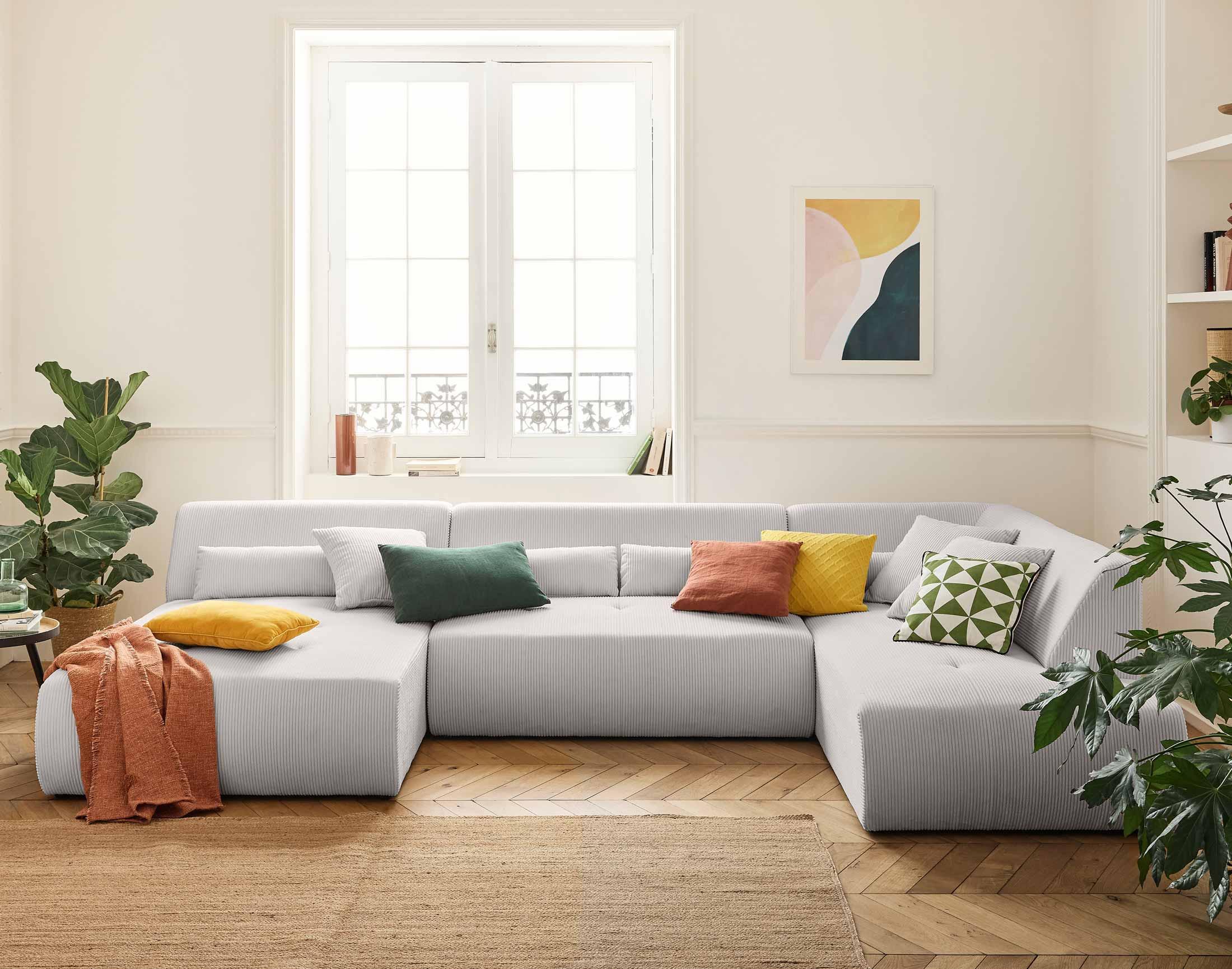 Découvrez le canapé d'angle panoramique Onyx qui vous séduira grâce à ses dimensions généreuses et son design original. Moderne, il s'imposera dans votre salon comme la pièce maitresse et vous permettra d'accueillir vos proches grâce à sa large assise. Dépourvu d'accoudoir et ouvert sur l'extérieur, ce canapé au revêtement en velours côtelé est à la fois tendance et confortable.