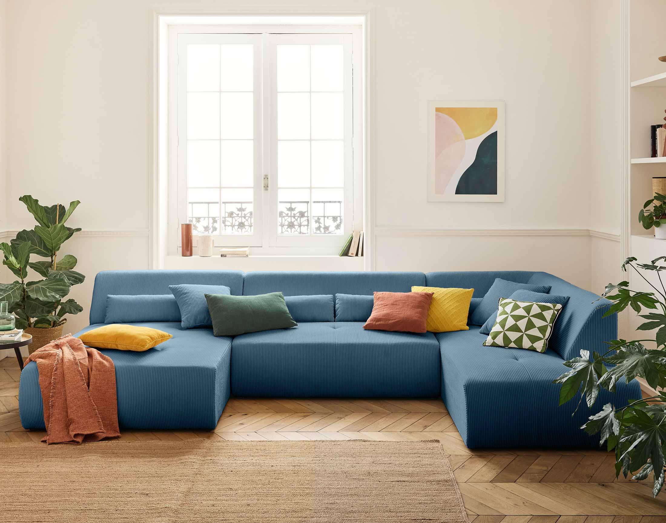 Disponible en plusieurs coloris et doté de coussins et cales-reins décoratifs, ce canapé ne vous laissera pas de marbre.