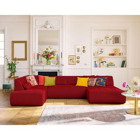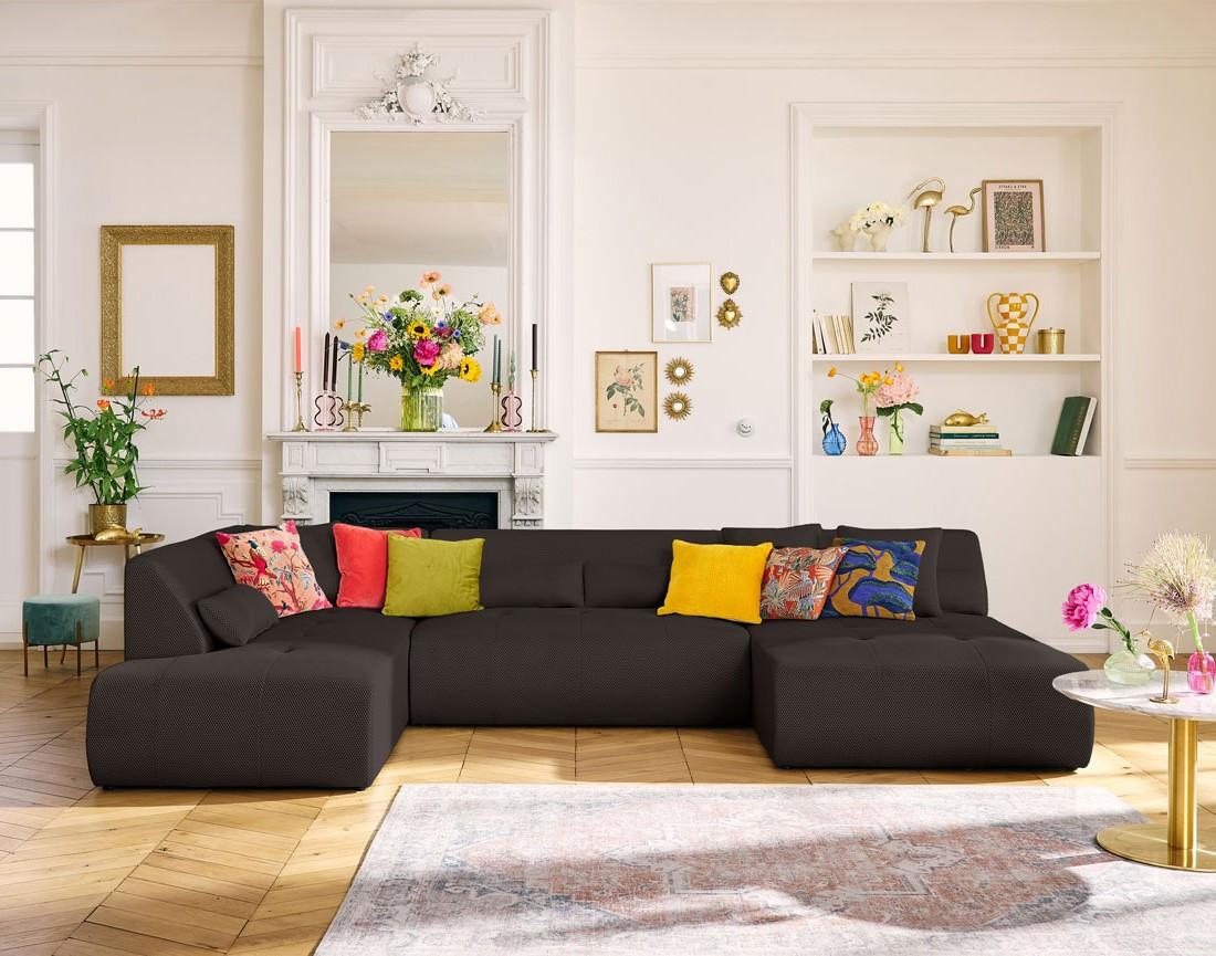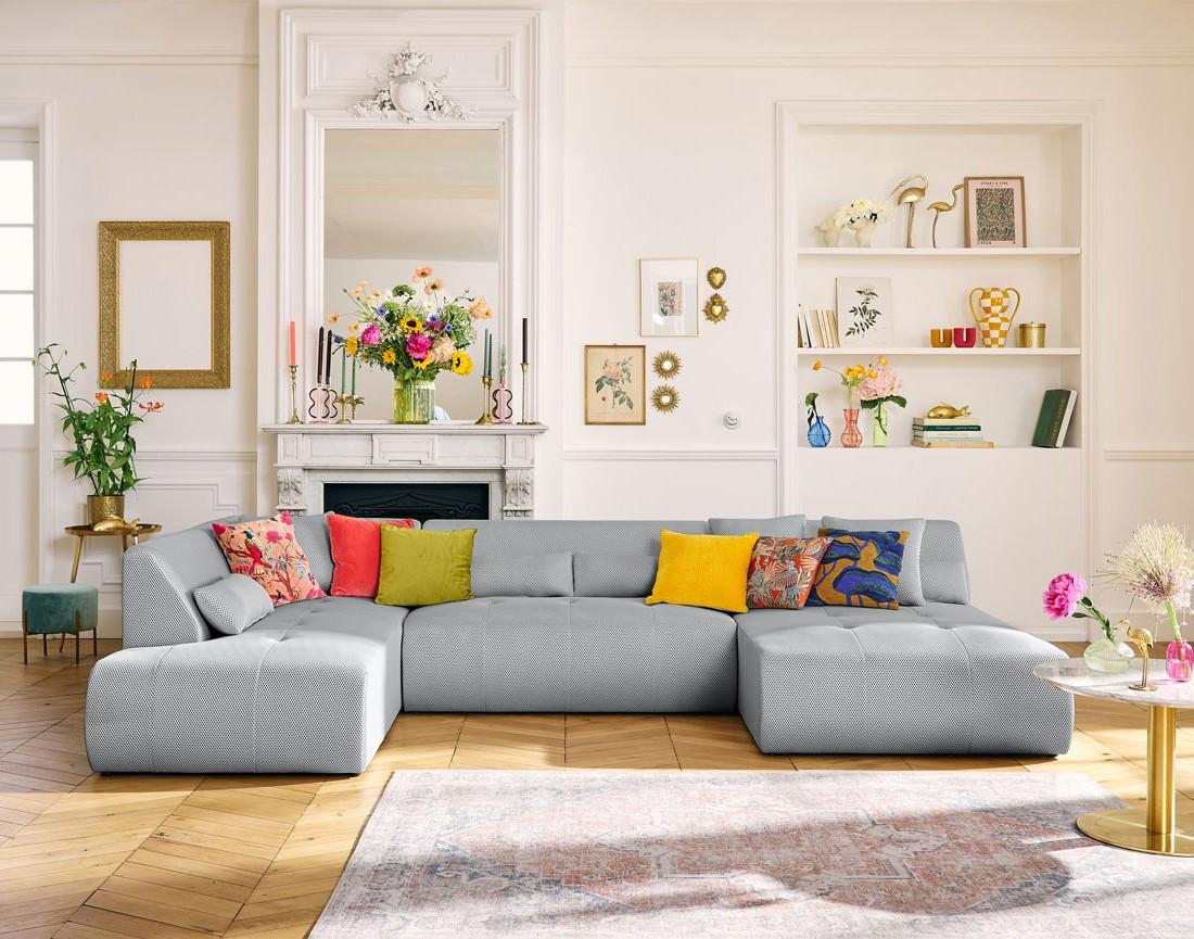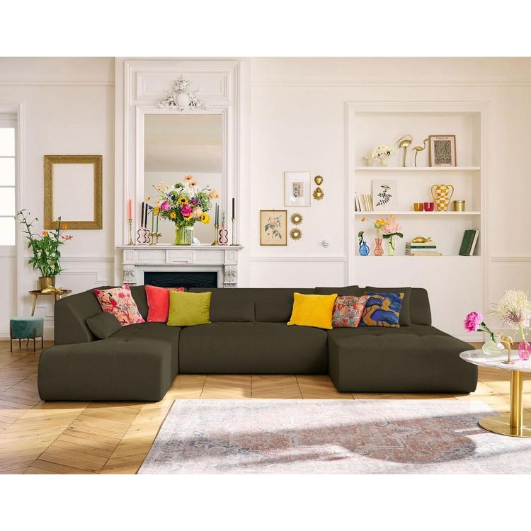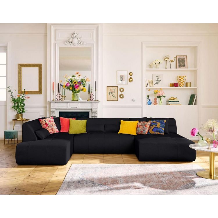 En savoir +Caractéristiques techniques :Origine : EuropeGarantie : 2 ansType de canapé : Canapé panoramiqueType d'angle : Panoramique UPosition de l'angle : Angle gaucheNombre de places : 7Modulable : NonEquipement : 6 coussins décoratifs inclusMatière de la structure : Bois aggloméré et panneaux de particulesMatière du canapé : Tissu mailles 3DDétail des matières : Assise : Mouse polyuréthane 28kg/m3 – Dossier : Mousse polyuréthane de densité 21kg/m3 – Ressorts sinusoïdaux – Structure en bois et panneaux de particules – Revêtement en tissu mailles 3D – Pieds en plastiqueGarnissage de l'assise : Mousse polyuréthaneDensité de l'assise en kg/m3 : 28Garnissage du dossier : Mousse polyuréthaneDensité du dossier en kg/m3 : 21Suspensions d'assise : Ressorts sinusoïdauxCharge maximum : 600Essence de bois : HêtrePieds : plastique noirPoids : 112Style : ContemporainPrésentation de la marque : Chez Lisa Design nous savons que votre maison est l'endroit où vous créez des moments inoubliables. Nous vous proposons du mobilier alliant confort, fonctionnalité et esthétisme. Découvrez nos produits allant des meubles de séjour aux canapés.Collection : ONYXPrésentation de la collection : La collection Onyx présente des canapés panoramiques et un pouf aux différents revêtements et au design original. Grâce à ses dimensions généreuses, vous pourrez y accueillir vos proches pour des moments de convivialité.Montage : En quelques minutesNombre de colis : 3Dimensions du produitHauteur : 75 cmLargeur : 334 cmProfondeur : 198 cmHauteur d'assise : 42 cmLargeur d'assise de la partie principale : 132 cmLargeur d'assise de la petite méridienne : 110 cmLargeur d'assise de la grande méridienne : 90 cmLargeur d'assise totale : 312 cmProfondeur d'assise de la partie principale : 60 cmProfondeur d'assise de la petite méridienne : 133 cmProfondeur d'assise de la grande méridienne : 165 cmHauteur des pieds : 2 cmDimensions des colisNombre de colis : 3Colis 1 : L202xP95xH75 cm / 45 kgColis 2 : L169xP112xH75 cm / 36 kgColis 3 : L135xP98xH75 cm / 31 kgConseils d'entretienAspirez régulièrement avec un embout adapté. Nettoyer les salissures légères avec un chiffon humide. Pour les taches tenaces, nous vous recommandons de choisir des produits adaptés selon le textile, et de faire un test sur une petite partie non visible.Enfin, pour garantir la longévité de votre article, évitez de le placer en exposition directe au soleil, le tissu risquerait de se décolorer avec le temps.Bon à savoirLes couleurs des produits affichés peuvent varier en fonction de votre écran d'ordinateur ou mobile.Nous faisons de notre mieux pour représenter fidèlement les couleurs de nos produits dans nos images, mais ne pouvons garantir qu'elles soient exactement les mêmes que celles que vous voyez sur votre écran.N'hésitez pas à nous contacter, nous sommes là pour vous aider à prendre une décision d'achat éclairée.Canapé panoramique d'angle gauche Onyx : modernité et confort optimalLe canapé panoramique d'angle gauche 7 places Onyx de Lisa Design est idéal pour transformer votre espace de vie en un lieu de détente et de convivialité. Son assise rebondie garantit un confort optimal. Ce canapé est parfait pour des moments de relaxation en famille et les apéritifs entre amis.Fabriqué en Europe, le canapé Onyx assure une qualité de fabrication supérieure, respectant les normes les plus strictes.Un tissu innovant avec un design particulièrement tendanceLe canapé Onyx se distingue par son revêtement en tissu mailles 3D façon nid d'abeille, une matière innovante et très en vogue chez les designers. Ce tissu apporte une touche de modernité et de sophistication à votre intérieur. Disponible en douze coloris attrayants : beige, terracotta, vert, bleu, gris clair, gris foncé, orange, jaune, noir, rouge, vert olive et bleu canard, le canapé Onyx peut être personnalisé pour s'harmoniser parfaitement avec la déco de votre salon. En plus d'être design, le tissu nid d'abeille est durable et facile à entretenir. Optez pour le canapé panoramique d'angle gauche 7 places Onyx de Lisa Design et transformez votre salon en un espace synonyme de confort et de convivialité !
