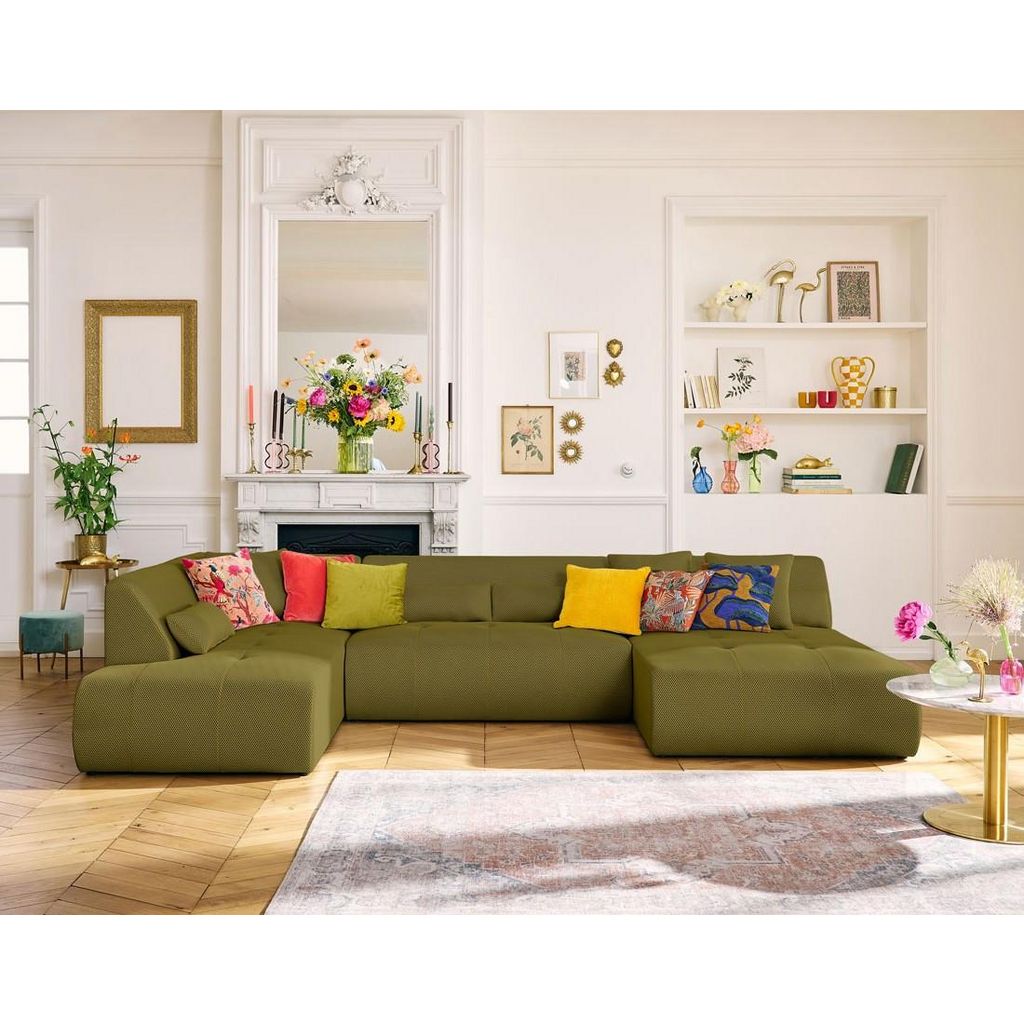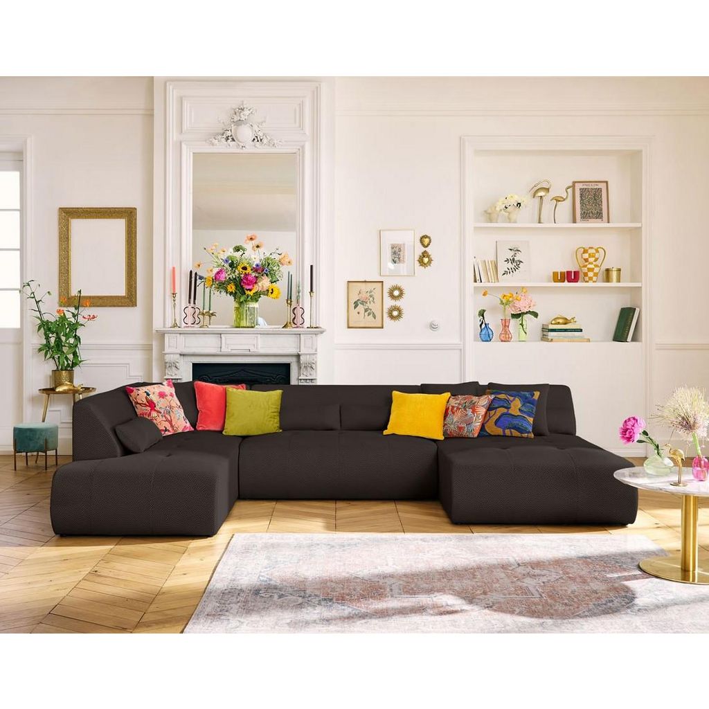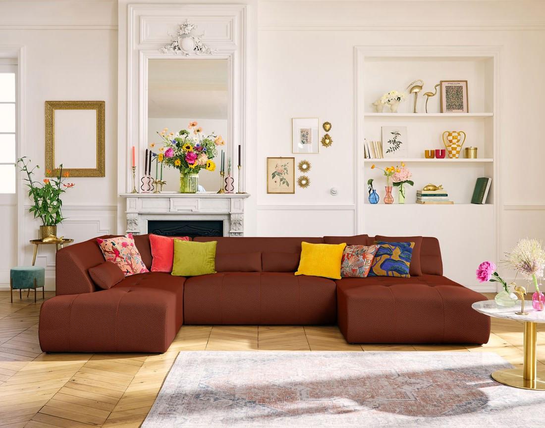 En savoir +Caractéristiques techniques :Origine : EuropeGarantie : 2 ansType de canapé : Canapé panoramiqueType d'angle : Panoramique UPosition de l'angle : Angle gaucheNombre de places : 7Modulable : NonEquipement : 6 coussins décoratifs inclusMatière de la structure : Bois aggloméré et panneaux de particulesMatière du canapé : Tissu mailles 3DDétail des matières : Assise : Mouse polyuréthane 28kg/m3 – Dossier : Mousse polyuréthane de densité 21kg/m3 – Ressorts sinusoïdaux – Structure en bois et panneaux de particules – Revêtement en tissu mailles 3D – Pieds en plastiqueGarnissage de l'assise : Mousse polyuréthaneDensité de l'assise en kg/m3 : 28Garnissage du dossier : Mousse polyuréthaneDensité du dossier en kg/m3 : 21Suspensions d'assise : Ressorts sinusoïdauxCharge maximum : 600Essence de bois : HêtrePieds : plastique noirPoids : 112Style : ContemporainPrésentation de la marque : Chez Lisa Design nous savons que votre maison est l'endroit où vous créez des moments inoubliables. Nous vous proposons du mobilier alliant confort, fonctionnalité et esthétisme. Découvrez nos produits allant des meubles de séjour aux canapés.Collection : ONYXPrésentation de la collection : La collection Onyx présente des canapés panoramiques et un pouf aux différents revêtements et au design original. Grâce à ses dimensions généreuses, vous pourrez y accueillir vos proches pour des moments de convivialité.Montage : En quelques minutesNombre de colis : 3Dimensions du produitHauteur : 75 cmLargeur : 334 cmProfondeur : 198 cmHauteur d'assise : 42 cmLargeur d'assise de la partie principale : 132 cmLargeur d'assise de la petite méridienne : 110 cmLargeur d'assise de la grande méridienne : 90 cmLargeur d'assise totale : 312 cmProfondeur d'assise de la partie principale : 60 cmProfondeur d'assise de la petite méridienne : 133 cmProfondeur d'assise de la grande méridienne : 165 cmHauteur des pieds : 2 cmDimensions des colisNombre de colis : 3Colis 1 : L202xP95xH75 cm / 45 kgColis 2 : L169xP112xH75 cm / 36 kgColis 3 : L135xP98xH75 cm / 31 kgConseils d'entretienAspirez régulièrement avec un embout adapté. Nettoyer les salissures légères avec un chiffon humide. Pour les taches tenaces, nous vous recommandons de choisir des produits adaptés selon le textile, et de faire un test sur une petite partie non visible.Enfin, pour garantir la longévité de votre article, évitez de le placer en exposition directe au soleil, le tissu risquerait de se décolorer avec le temps.Bon à savoirLes couleurs des produits affichés peuvent varier en fonction de votre écran d'ordinateur ou mobile.Nous faisons de notre mieux pour représenter fidèlement les couleurs de nos produits dans nos images, mais ne pouvons garantir qu'elles soient exactement les mêmes que celles que vous voyez sur votre écran.N'hésitez pas à nous contacter, nous sommes là pour vous aider à prendre une décision d'achat éclairée.Canapé panoramique d'angle gauche Onyx : modernité et confort optimalLe canapé panoramique d'angle gauche 7 places Onyx de Lisa Design est idéal pour transformer votre espace de vie en un lieu de détente et de convivialité. Son assise rebondie garantit un confort optimal. Ce canapé est parfait pour des moments de relaxation en famille et les apéritifs entre amis.Fabriqué en Europe, le canapé Onyx assure une qualité de fabrication supérieure, respectant les normes les plus strictes.Un tissu innovant avec un design particulièrement tendanceLe canapé Onyx se distingue par son revêtement en tissu mailles 3D façon nid d'abeille, une matière innovante et très en vogue chez les designers. Ce tissu apporte une touche de modernité et de sophistication à votre intérieur. Disponible en douze coloris attrayants : beige, terracotta, vert, bleu, gris clair, gris foncé, orange, jaune, noir, rouge, vert olive et bleu canard, le canapé Onyx peut être personnalisé pour s'harmoniser parfaitement avec la déco de votre salon. En plus d'être design, le tissu nid d'abeille est durable et facile à entretenir. Optez pour le canapé panoramique d'angle gauche 7 places Onyx de Lisa Design et transformez votre salon en un espace synonyme de confort et de convivialité !