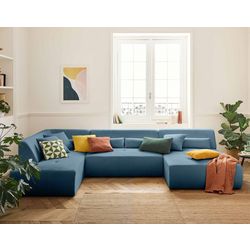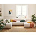 Caractéristiques techniques :Origine : EuropeGarantie : 2 ansType de canapé : Canapé panoramiqueType d'angle : Panoramique UPosition de l'angle : Angle gaucheNombre de places : 7Modulable : NonEquipement : 6 coussins décoratifs inclusMatière de la structure : Bois aggloméré et panneaux de particules