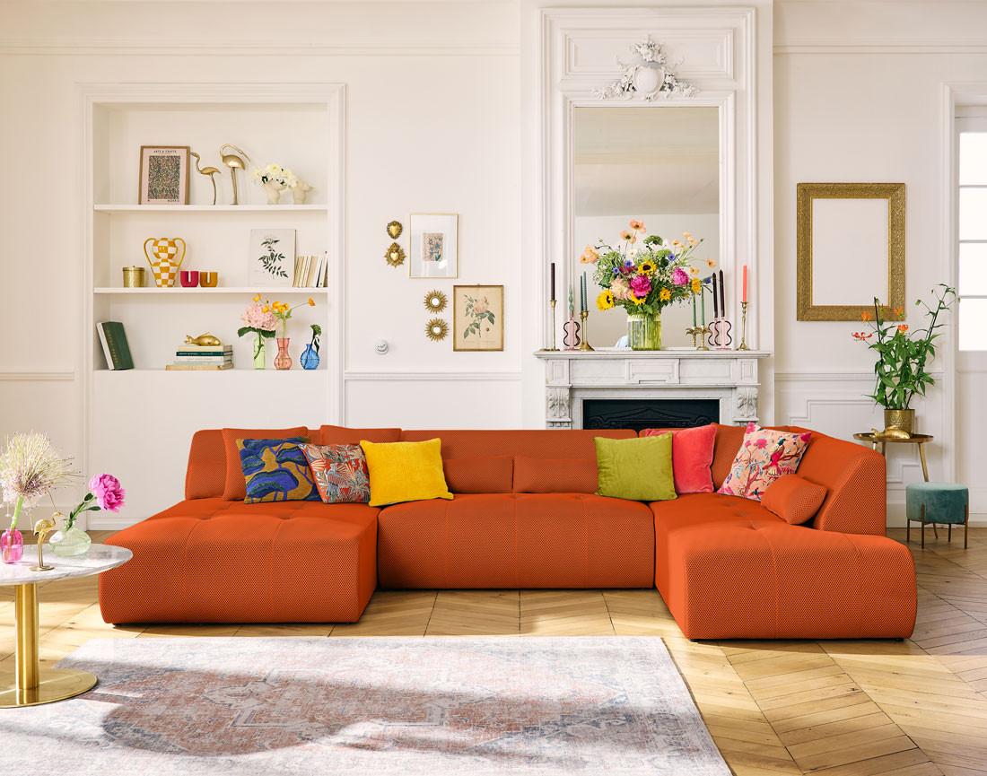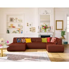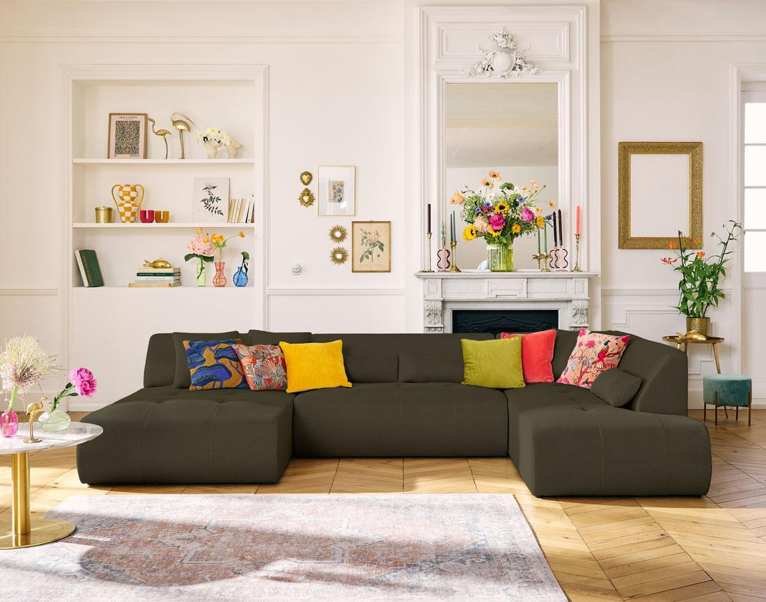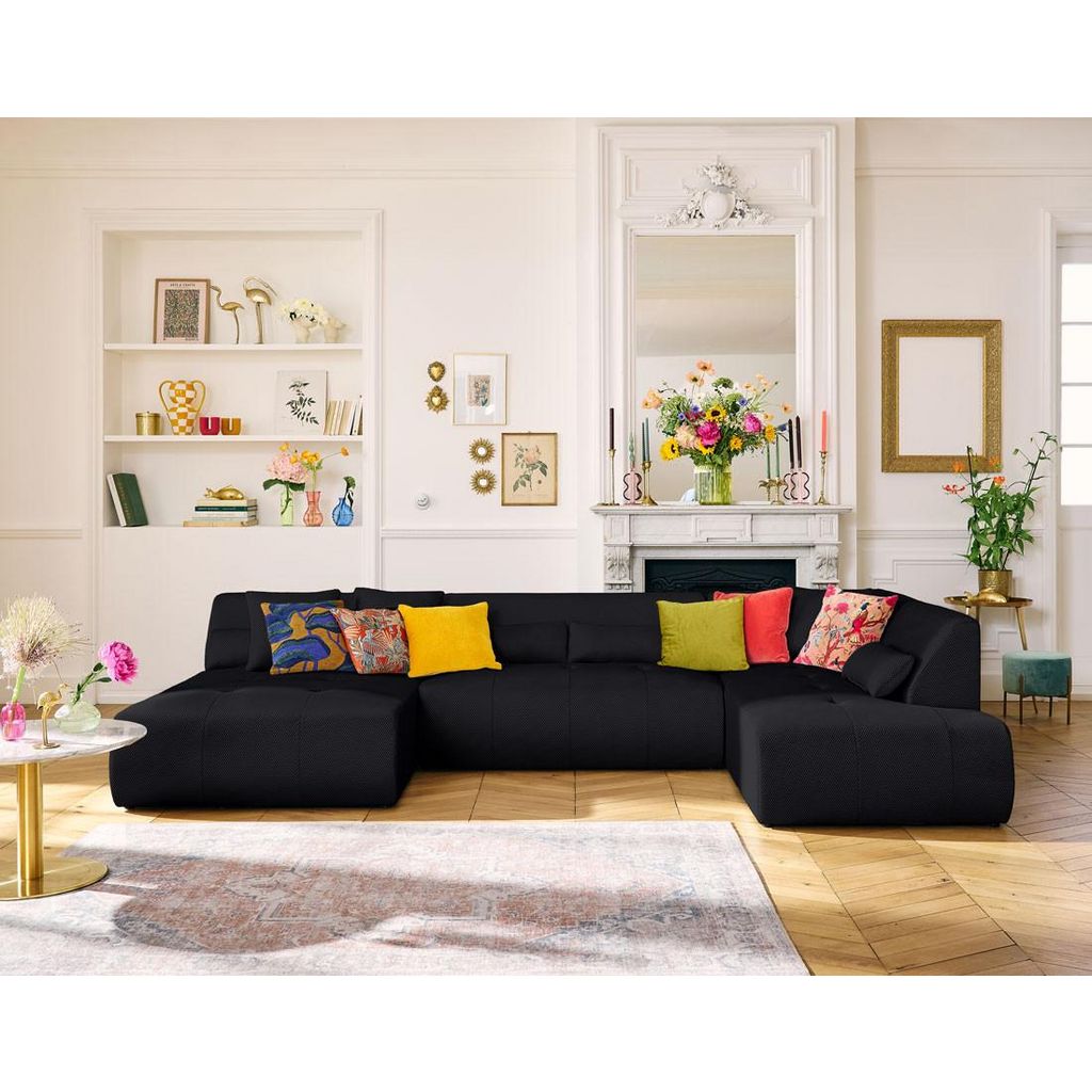 Canapé panoramique d'angle droit et modulable Onyx : 7 places