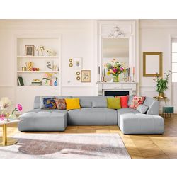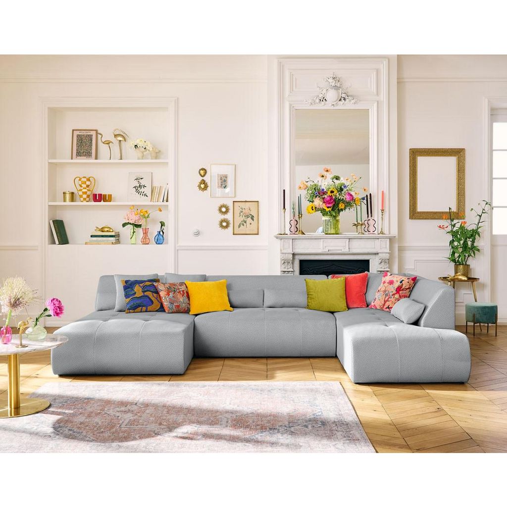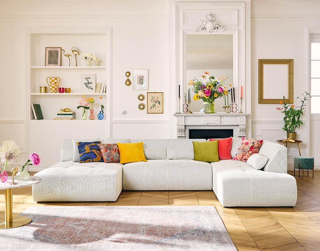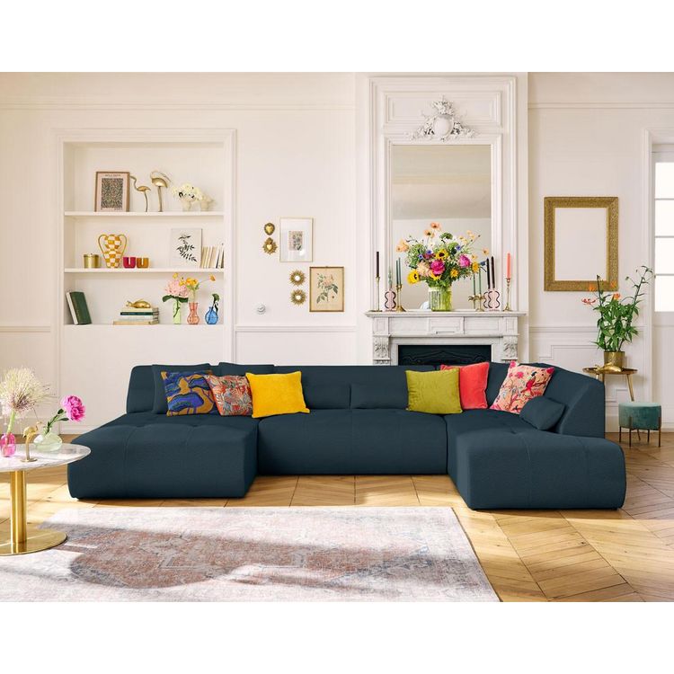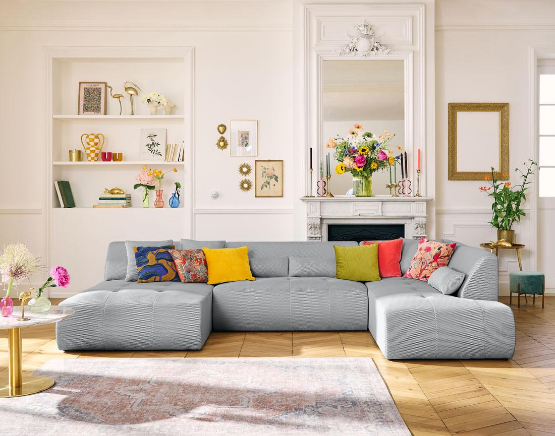 Canapé panoramique d'angle droit et modulable Onyx : 7 places