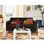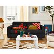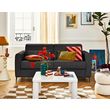 - Détail des matières : Assise : Mousse polyuréthane 25Kg/m3 - Dossier : Mousse polyuréthane 25Kg/m3 – Sangles élastiques – Structure en bois et panneaux de particules – Revêtement simili 100% polyester – Pieds en métal noir