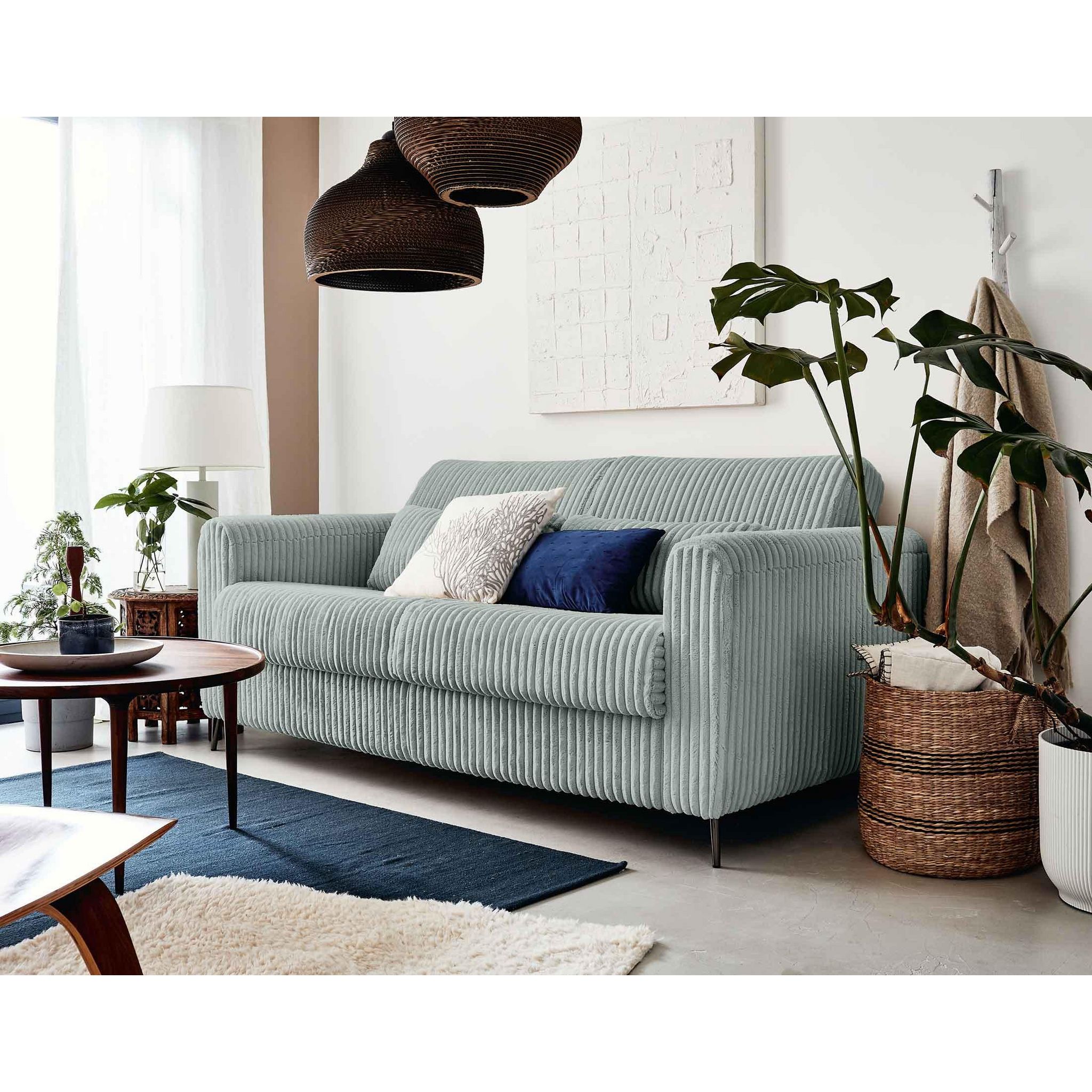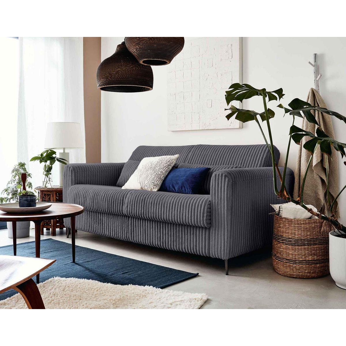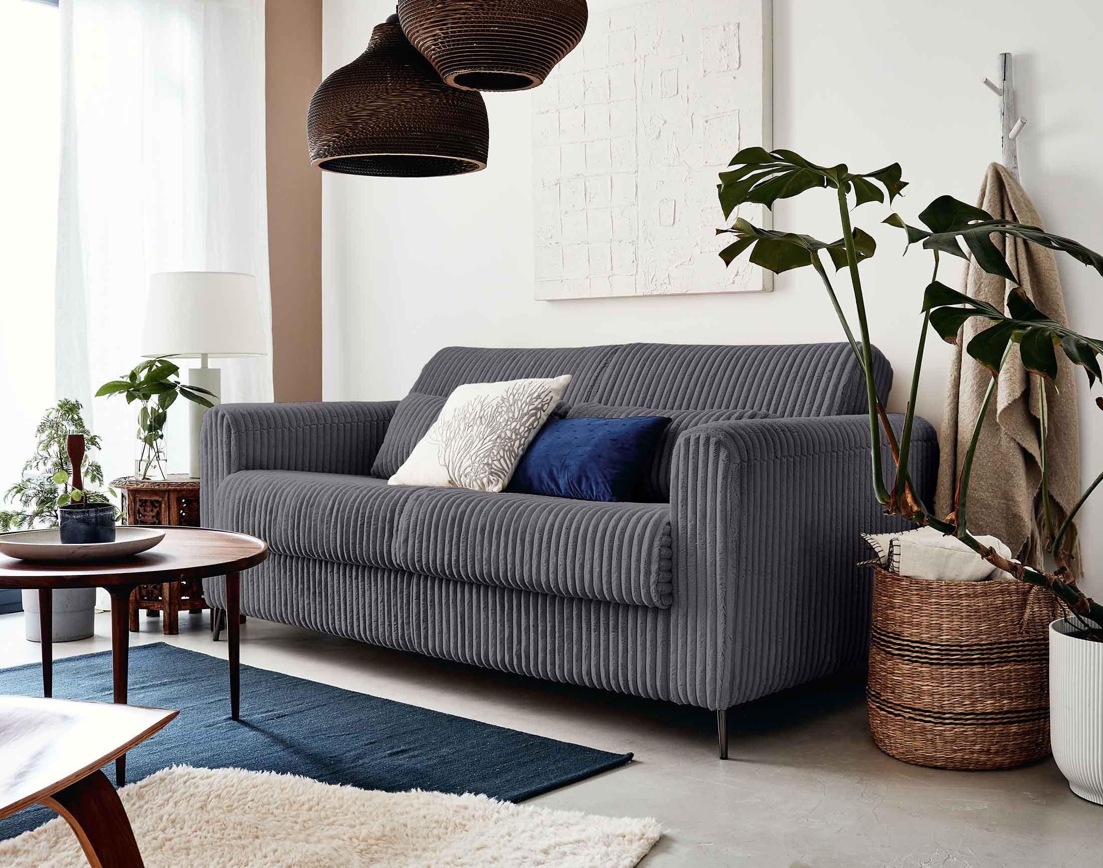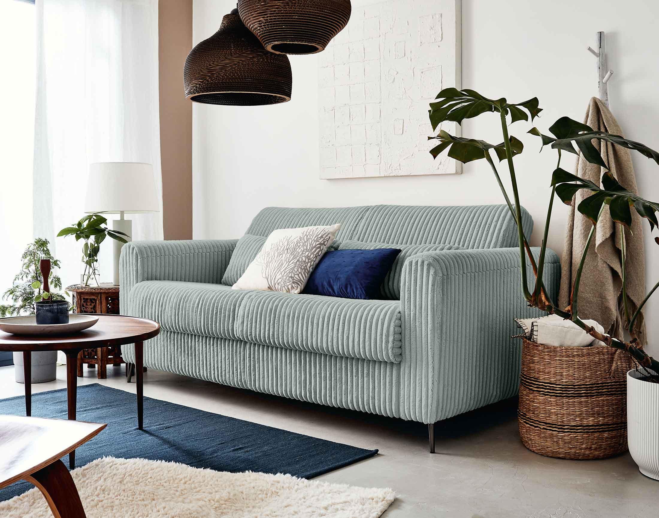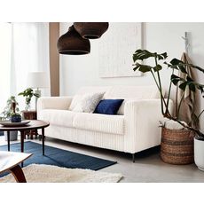 Gagnez de la place dans votre pièce à vivre avec le canapé 3 places convertible Owen en velours côtelé grosses côtes, aussi doux qu'un plaid ! Optimisez l'espace de votre studio, appartement, chambre ou mezzanine en optant pour ce modèle design et confortable en journée. Le soir venu, il se transformera en quelques instants en un lit deux places de 190x140 cm tout aussi agréable qui vous accompagnera pour une bonne nuit de sommeil. Pratique, la poche située sur l'un des accoudoirs permet de ranger smartphone, tablette, livre ou télécommande.