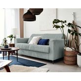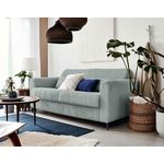 Le canapé lit Owen est équipé d'un sommier métallique avec mécanisme à ouverture express qui permet de déplier et replier le lit très facilement sans enlever les coussins d'assise et de dossier. Côté confort, l'assise est composée d'une mousse polyuréthane de 25kg/m3 tout comme les deux coussins de dossier de 80x50 cm et épais de 12 cm. La nuit, en position lit, il peut accueillir deux personnes grâce à ses dimensions standards de 140x190 cm et vous garantir un sommeil confortable et agréable comme dans un lit normal.