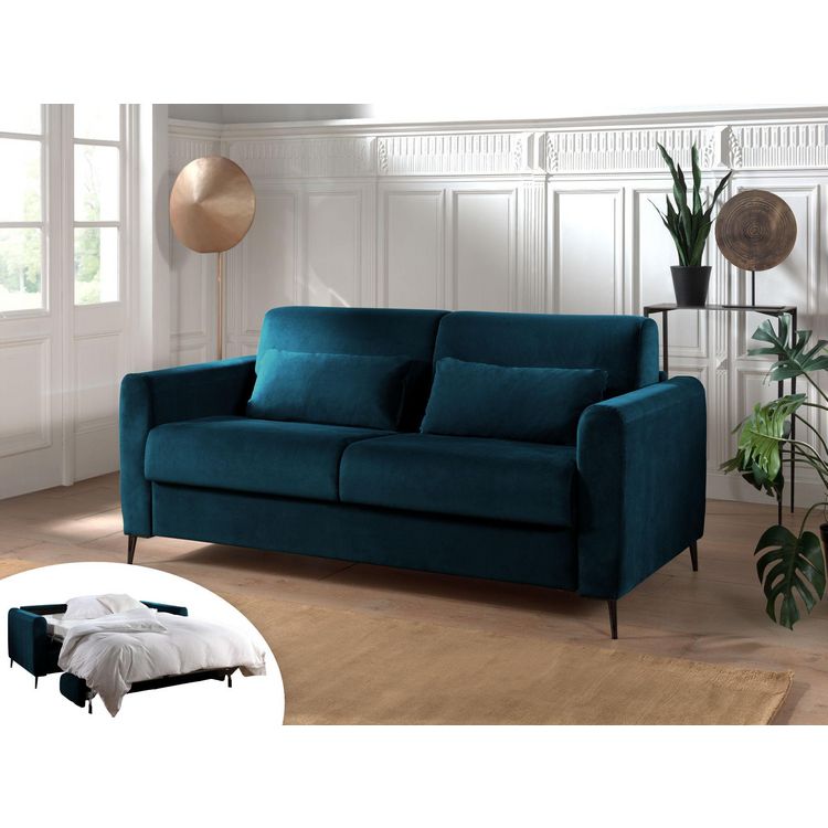 Owen - canapé 3 places convertible express couchage quotidien 140 cm matelas 12 cm en velours