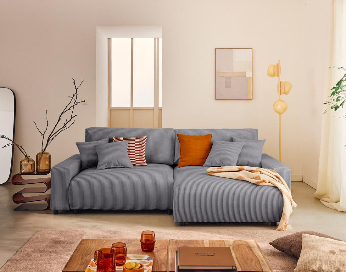 Pivoine - canapé d'angle 4 places réversible convertible avec 2 coffres en velours côtelé