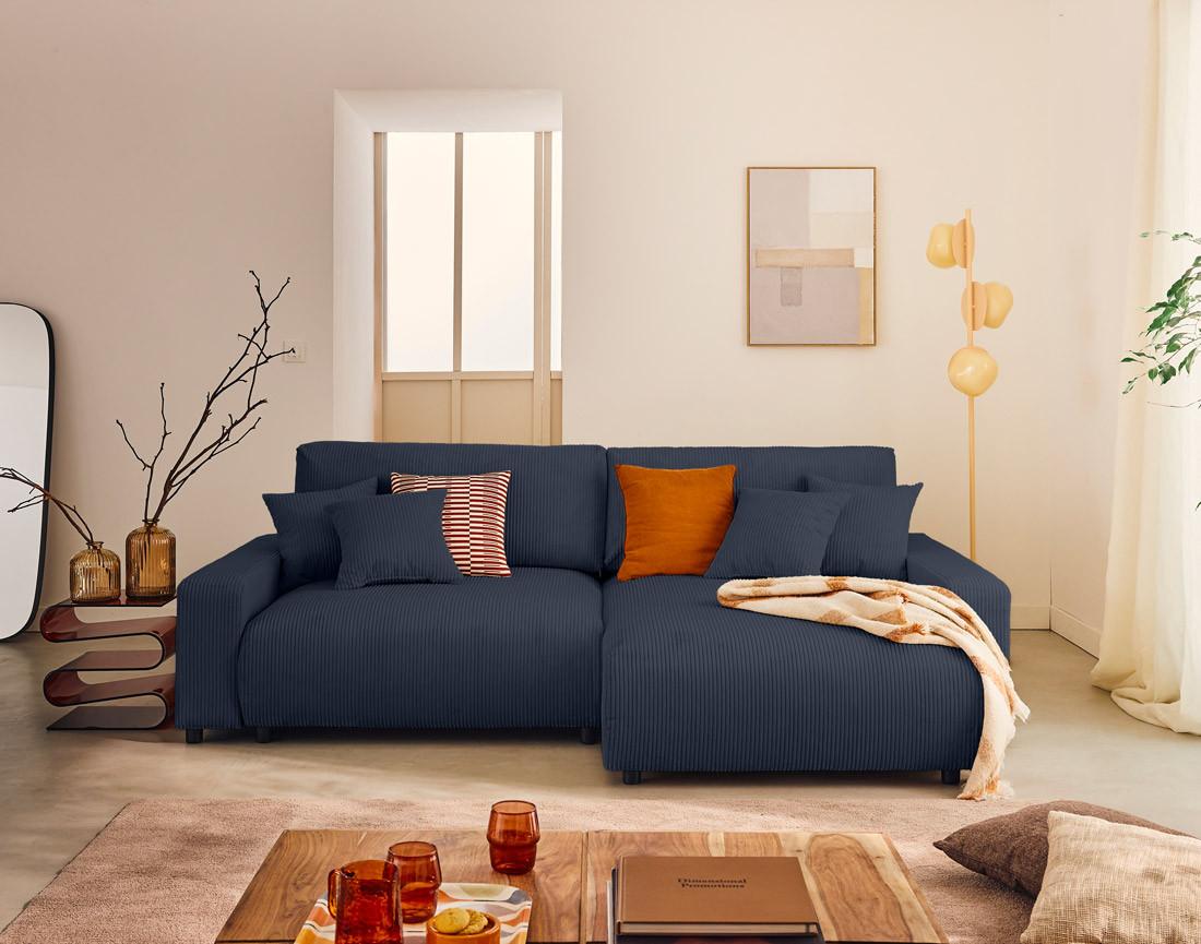 - Présentation de la collection : Optez pour le canapé d'angle réversible 4 places Pivoine pour un salon cocooning. Ce canapé en velours côtelé possède une assise moelleuse et rebondie. Il est également doté d'une fonction convertible et deux coffres