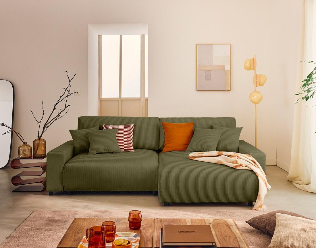 Vous rêvez d'un canapé qui allie design, confort et praticité ? Le Pivoine coche toutes les cases. Avec sa silhouette élégante en velours côtelé et son allure contemporaine, ce canapé d'angle réversible 4 places se distingue par son charme intemporel et son côté astucieux. Prêt à vous accueillir pour des moments cosy en journée, il se transforme en un lit pratique et spacieux en un clin d'œil pour chouchouter vos invités.