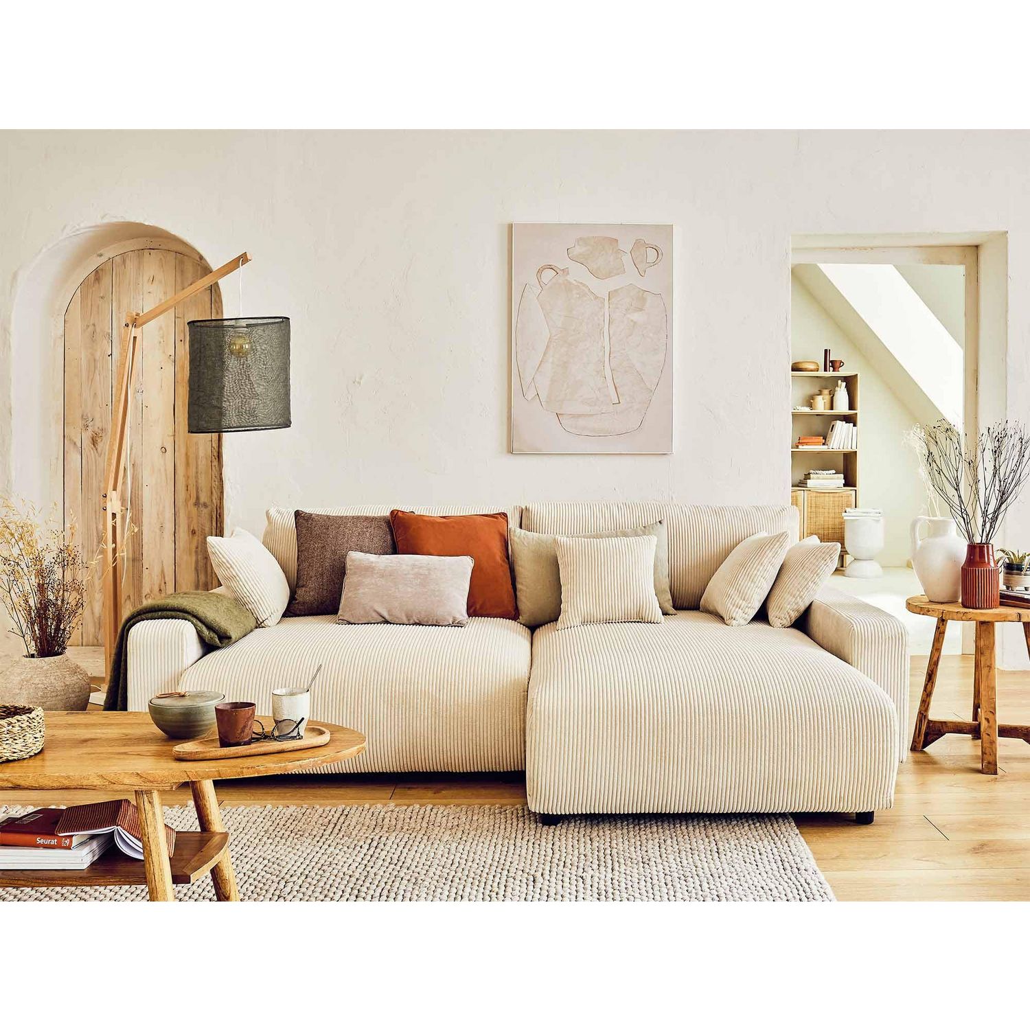 Envie d'une ambiance cocooning pour votre salon ? Laissez-vous séduire par le canapé d'angle réversible Pivoine ! Son assise profonde peut accueillir jusqu'à 4 personnes, ce qui le rend parfait pour des moments de détente ou pour recevoir vos invités. Vous allez apprécier la douceur et le confort de son revêtement en velours côtelé qui apportera de la chaleur à votre salon.
