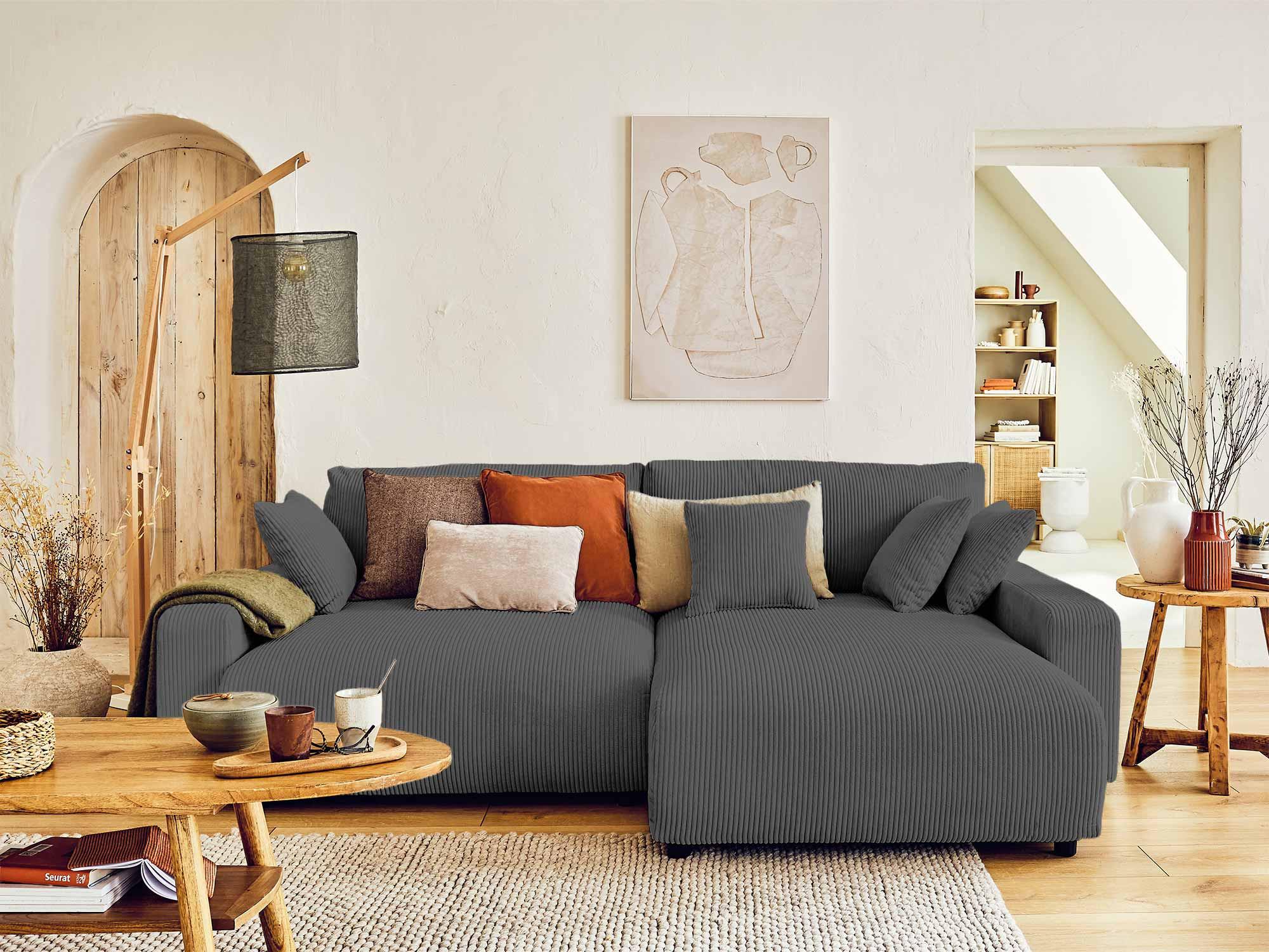 Pivoine - canapé d'angle réversible - 4 places - convertible avec coffre - en velours côtelé