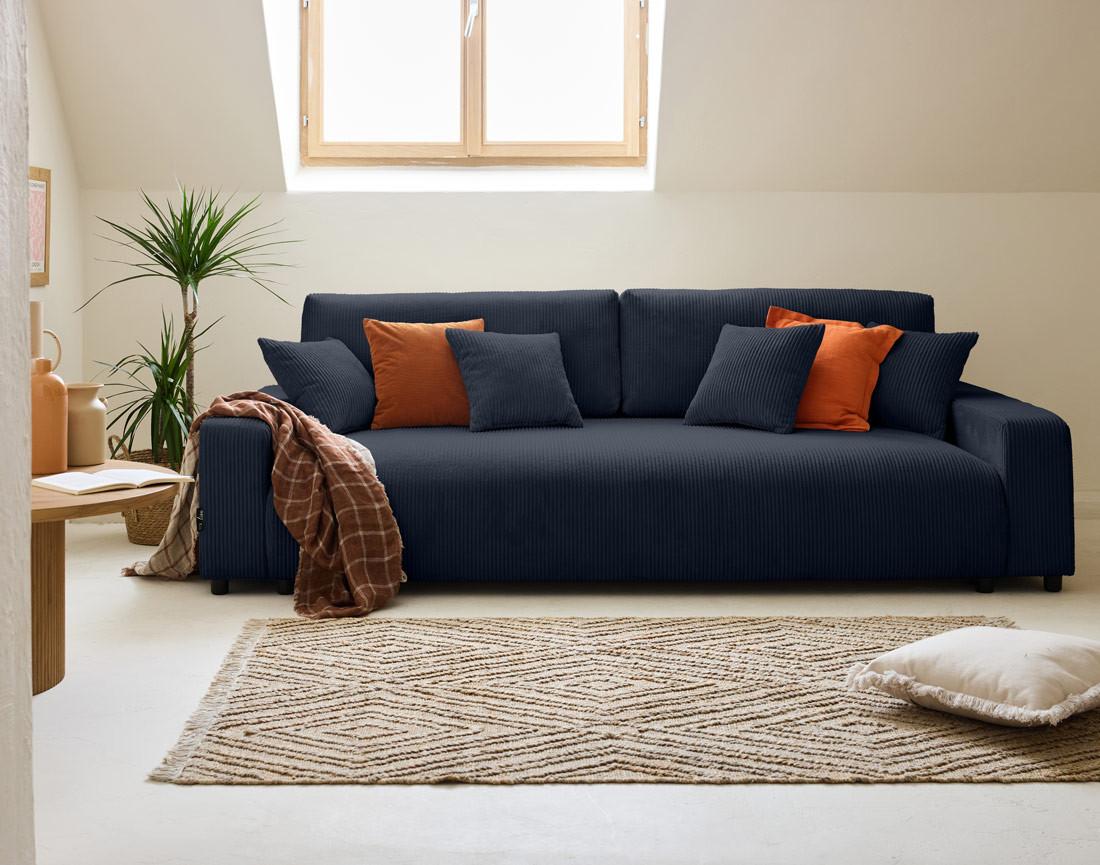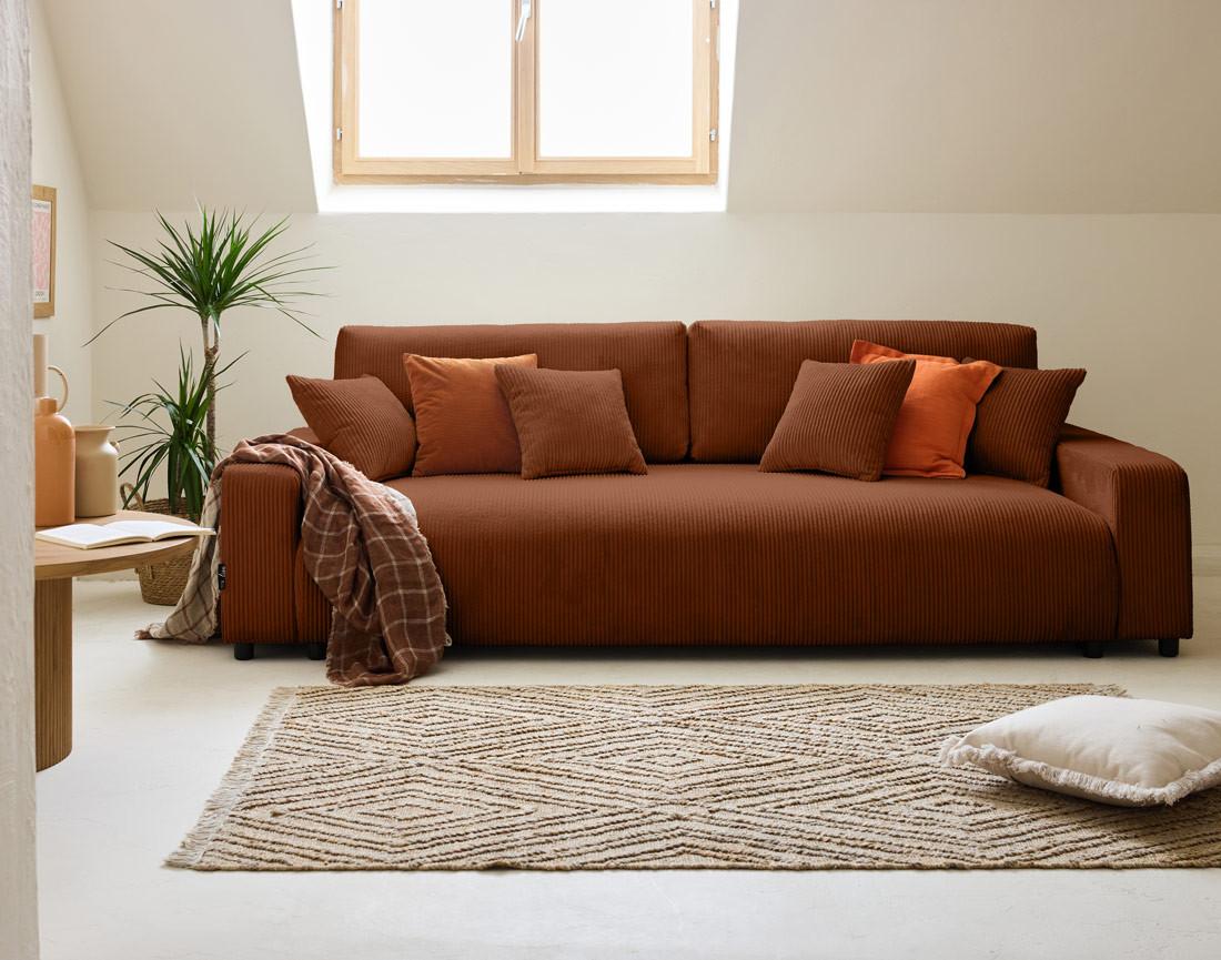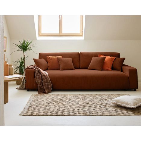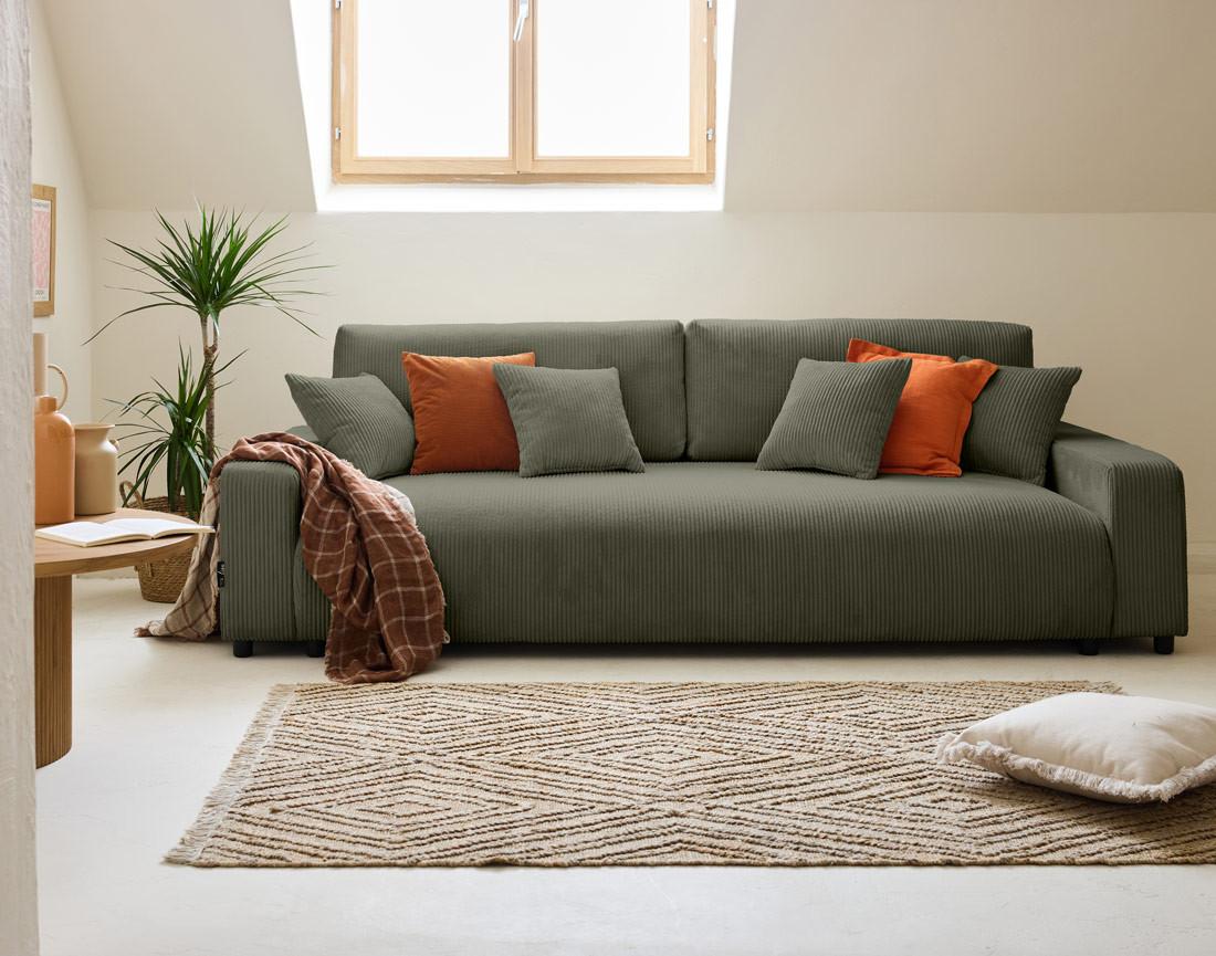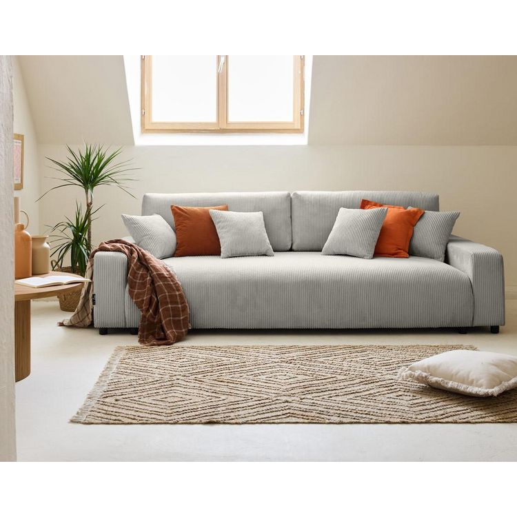 Pivoine - canapé droit 3 places - convertible avec coffre - en velours côtelé
