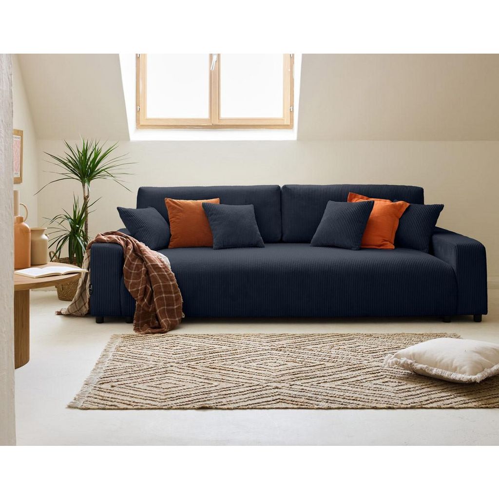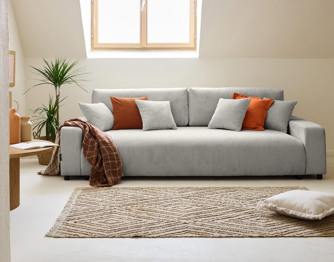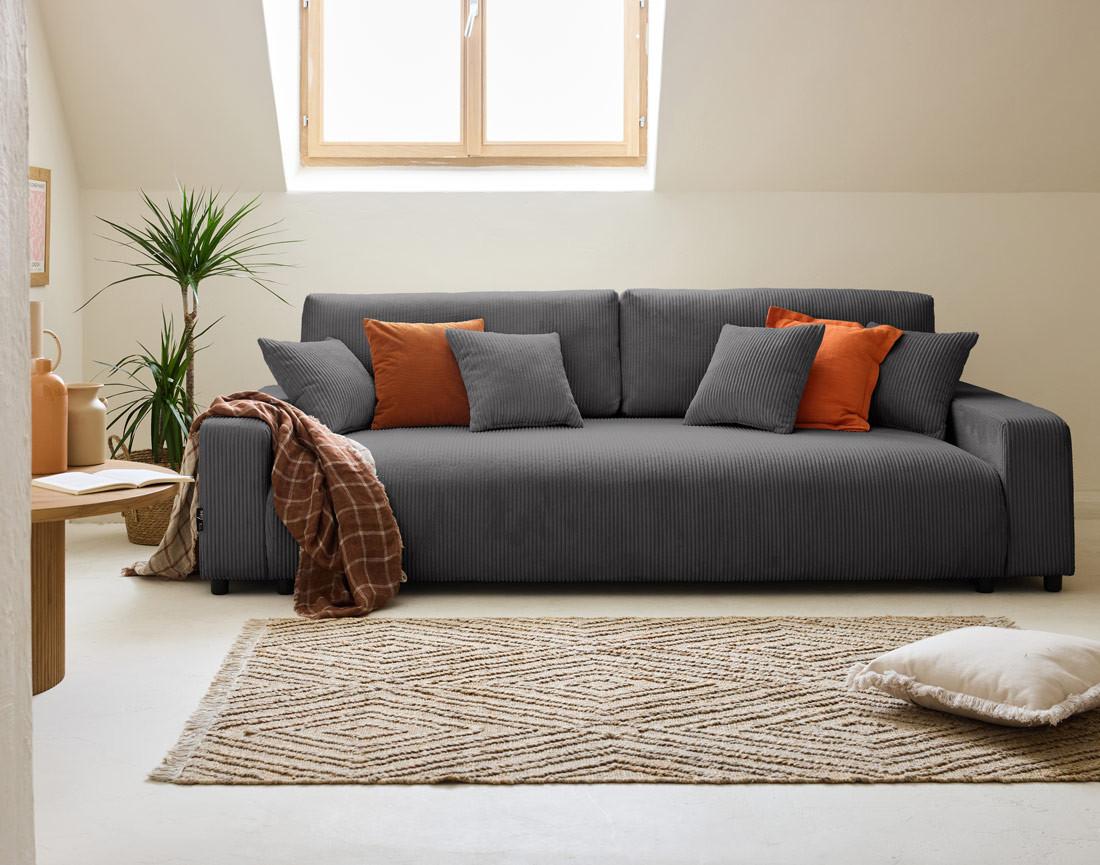 Pivoine - canapé droit 3 places - convertible avec coffre - en velours côtelé