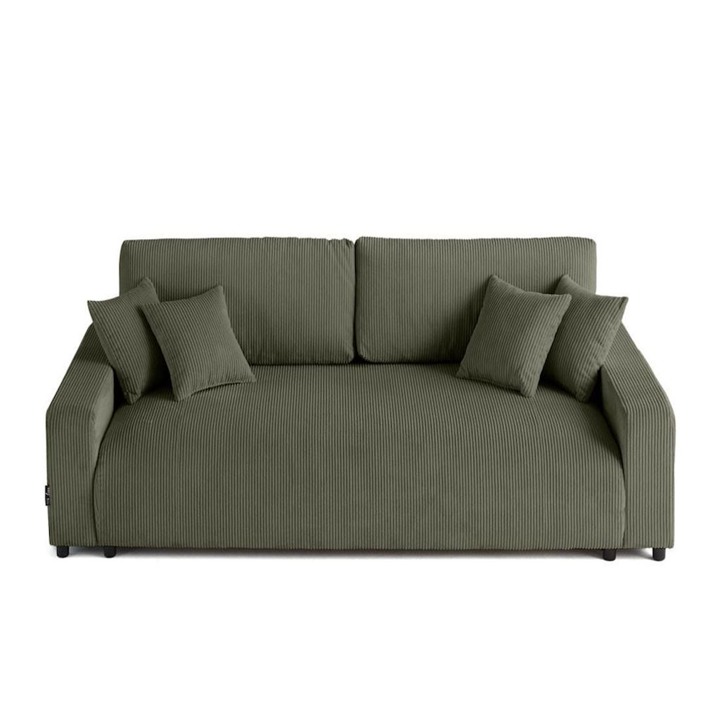 - Détail des matières : Assise : Mousse polyuréthane de densité 30Kg/m3 – Dossier : Mousse polyuréthane de densité 18Kg/m3- Ressorts ondulés - Structure composée de bois massif et panneaux de particules - Revêtement en velours côtelé - Pieds en plastique
