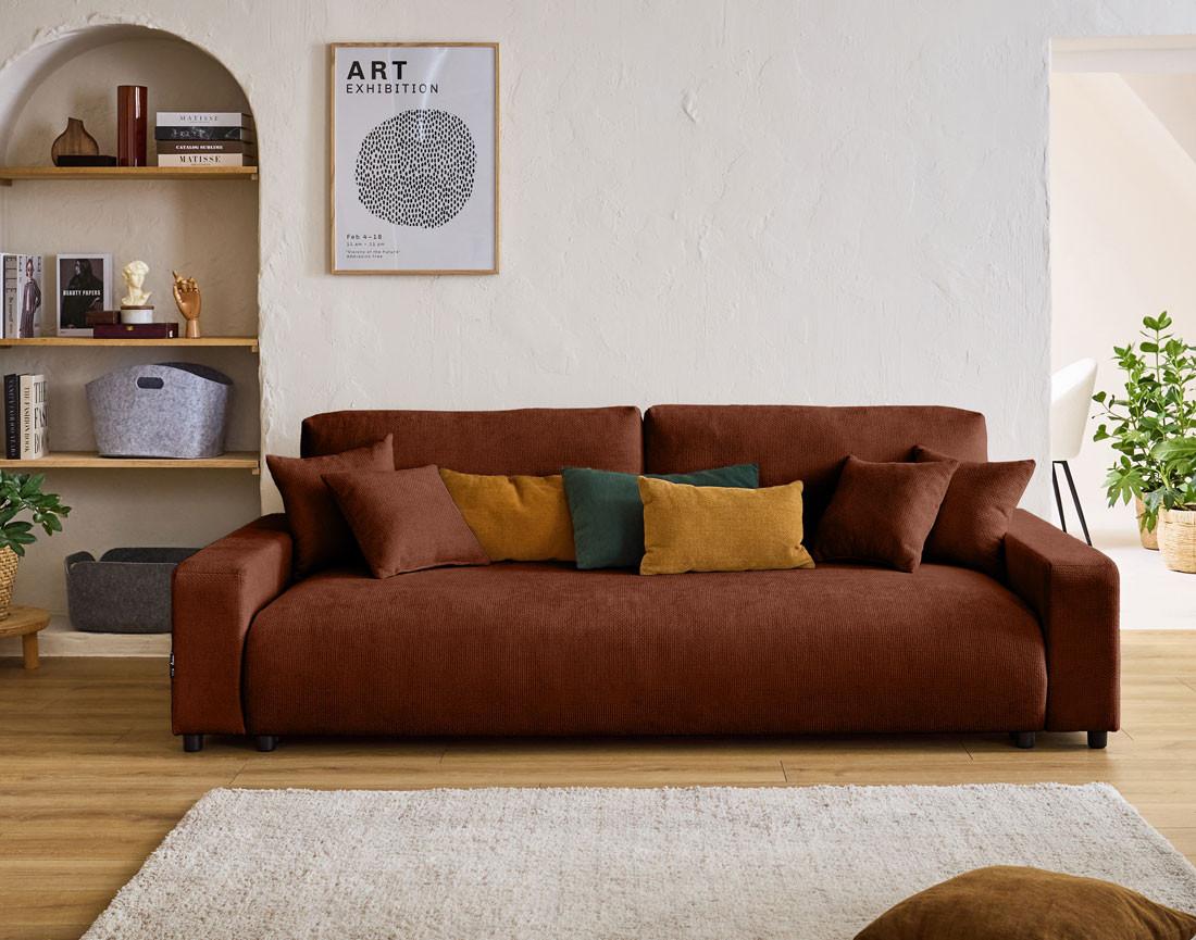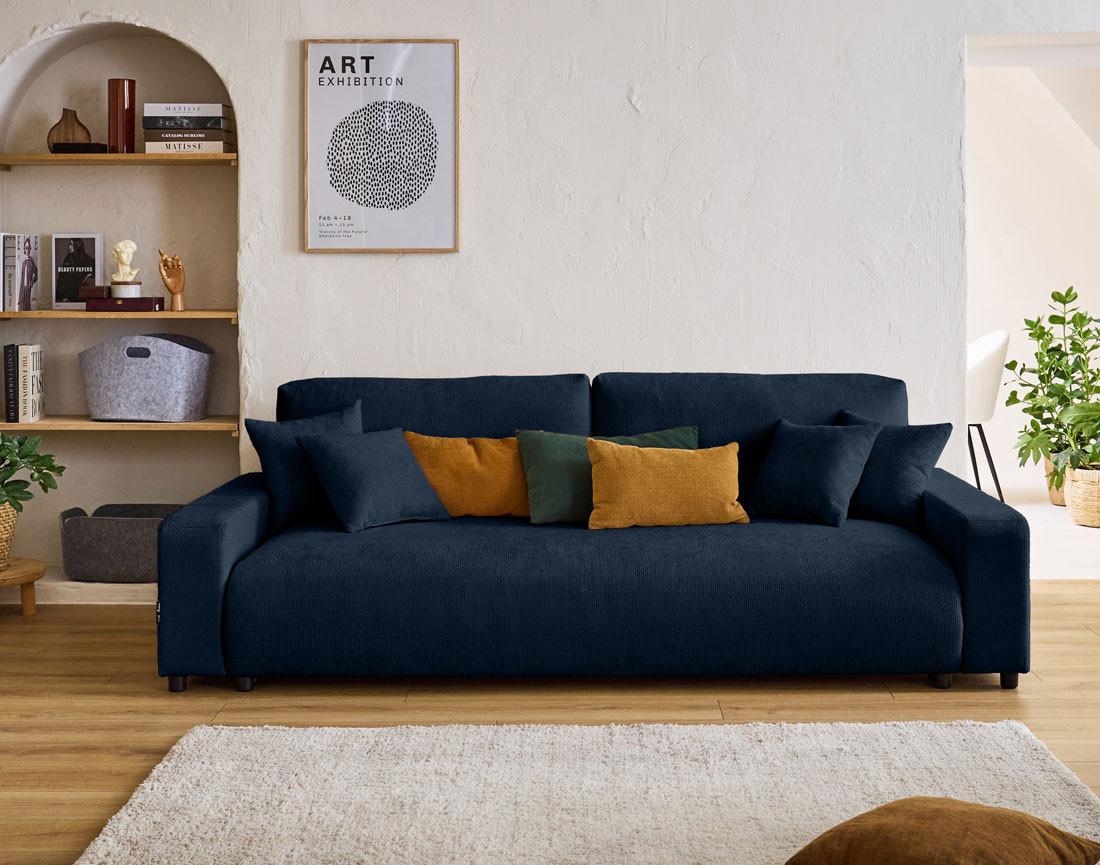 Pivoine - canapé droit 3 places - convertible avec coffre - en velours texturé