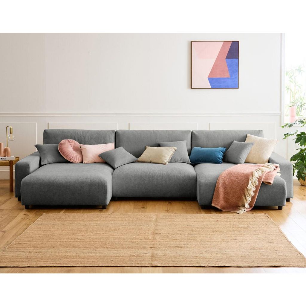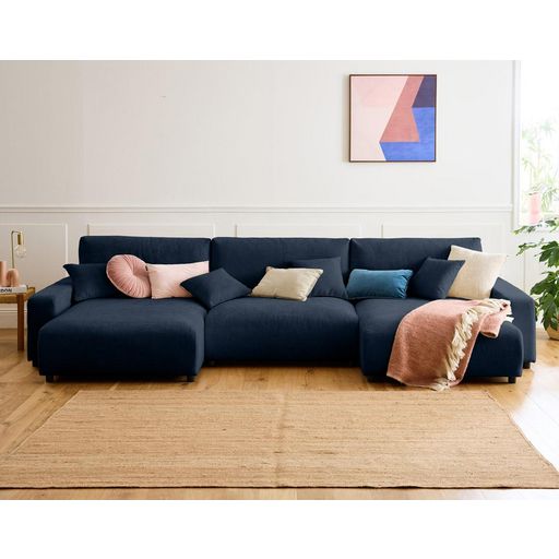 Pivoine - canapé panoramique en u - 7 places - convertible avec coffre - en velours texturé