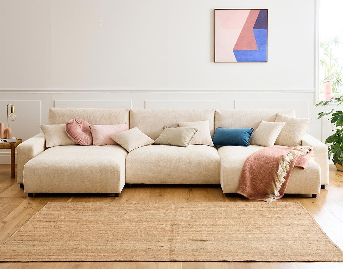Le canapé panoramique Pivoine est la solution polyvalente qui allie élégance, confort et praticité.
