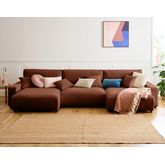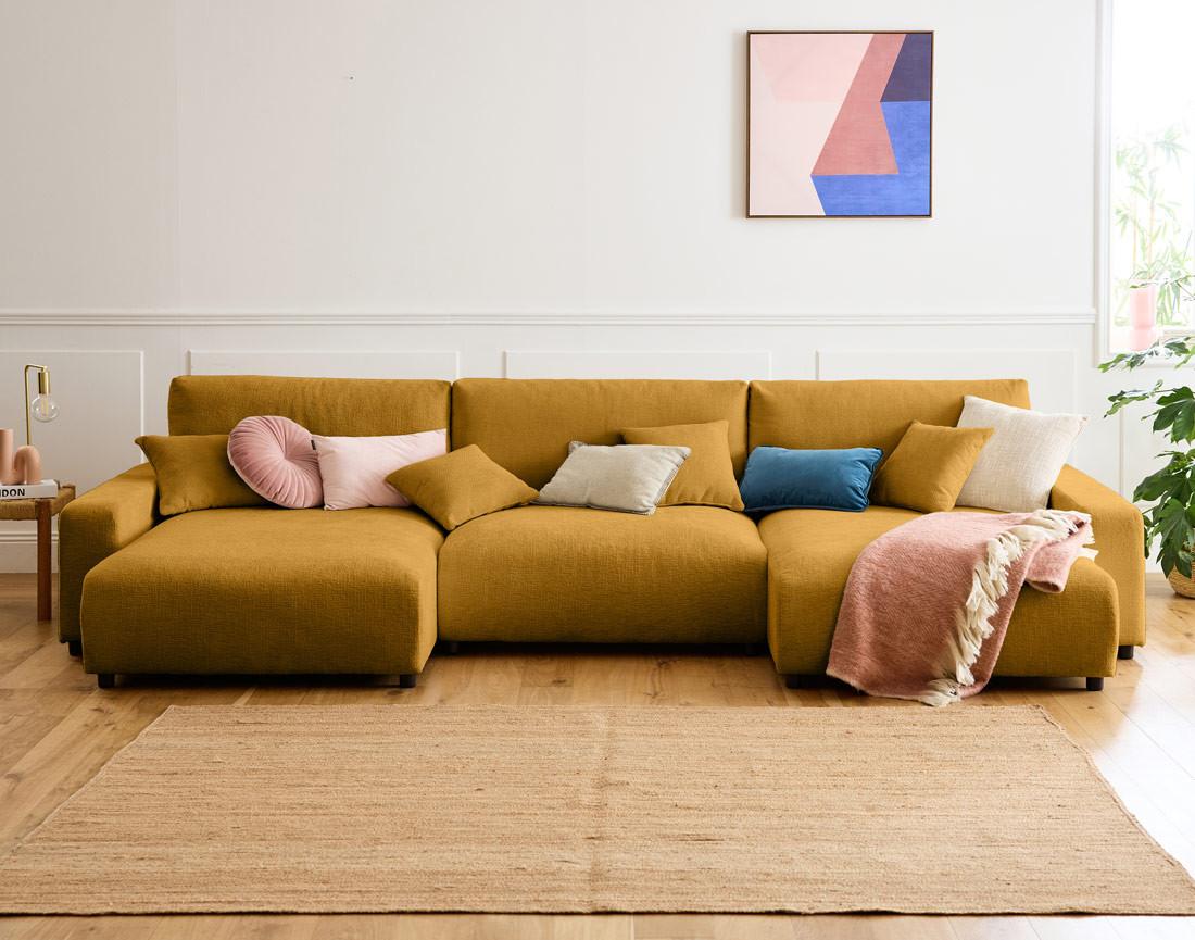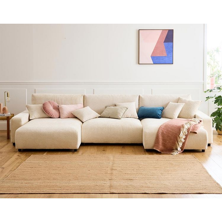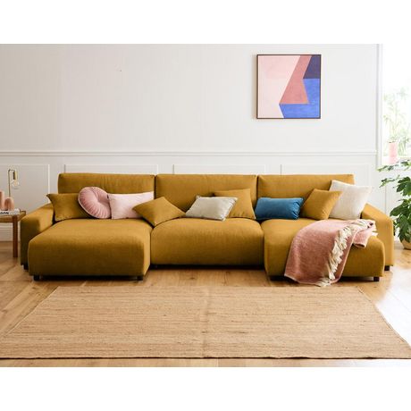 Si vous rêvez d'un canapé doux et accueillant, le canapé panoramique en U Pivoine sera votre parfait allié pour un salon cocooning réussi. Ses dimensions généreuses le rendent parfait pour des moments de détente ou pour recevoir vos proches. Vous allez apprécier la douceur et le confort de son revêtement en velours côtelé qui apportera de la chaleur à votre intérieur.