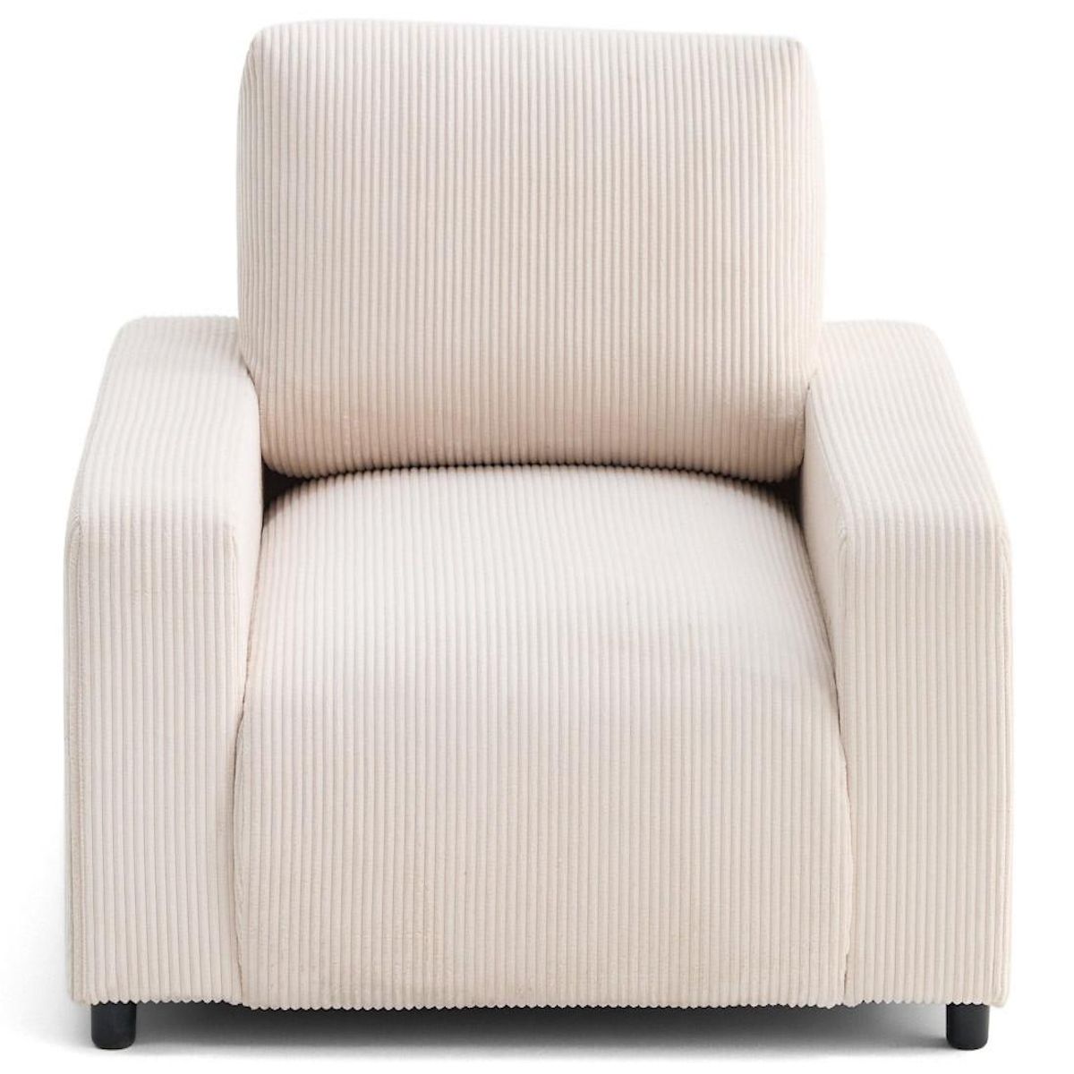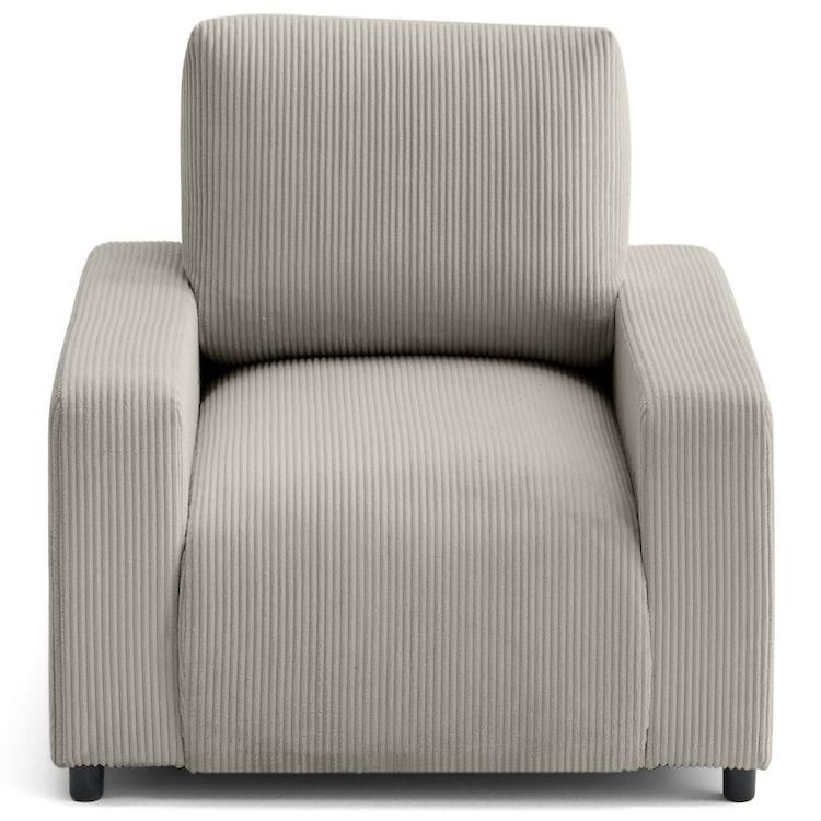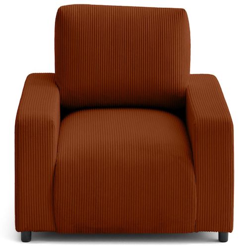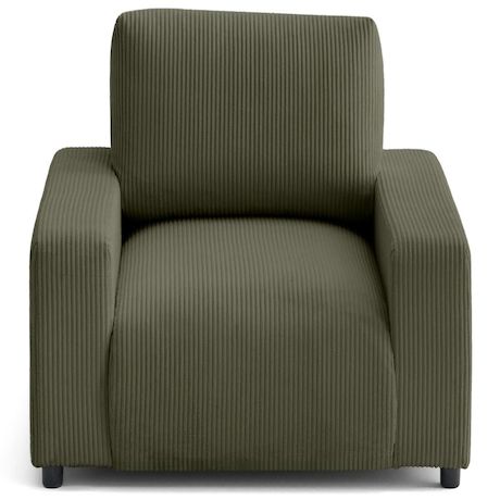 - Détail des matières : Assise : Mousse polyuréthane de densité 30Kg/m3 - Dossier : Mousse polyuréthane de densité 30Kg/m3 - Ressorts ondulés - Structure composée de bois massif et panneaux de particules - Revêtement en velours côtelé - Pieds en plastique