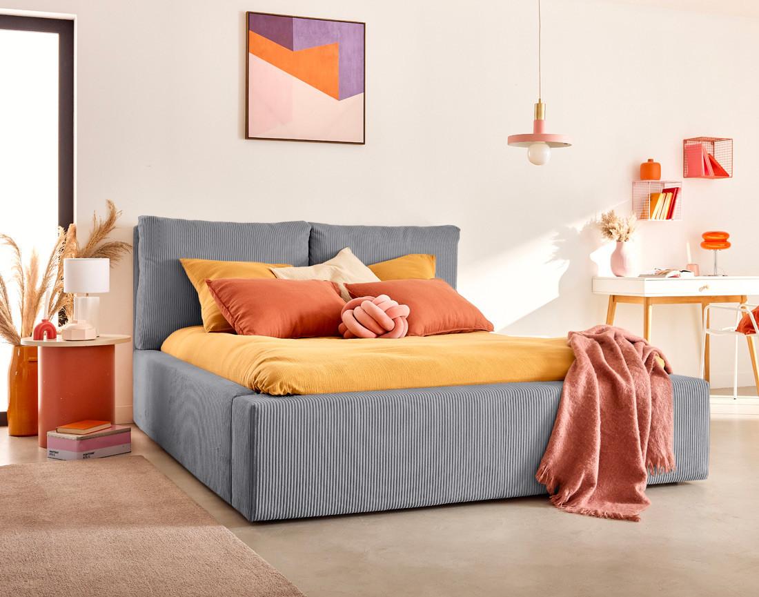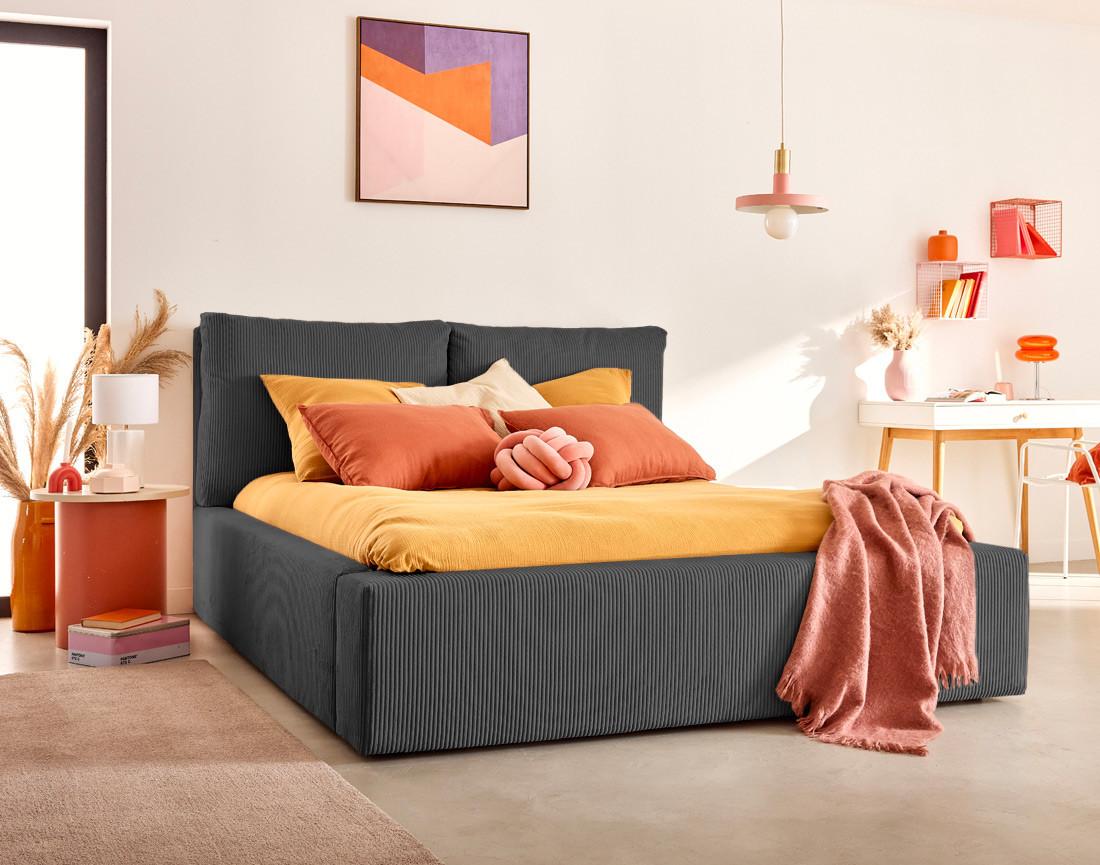 Le lit Pivoine 140x190 se distingue par son revêtement en velours côtelé, une matière tendance qui allie douceur et élégance. Ce tissu apporte une touche sophistiquée et chaleureuse à votre chambre, tout en restant au cœur des tendances actuelles. La tête de lit intégrée avec effet oreillers ajoute une dimension supplémentaire de confort et de style. Ce design unique crée une atmosphère invitante et douillette, idéale pour se détendre après une longue journée. Les lits Pivoine font partie de la même collection que les canapés Pivoine, offrant ainsi une qualité de fabrication irréprochable et un confort tout aussi exceptionnel.