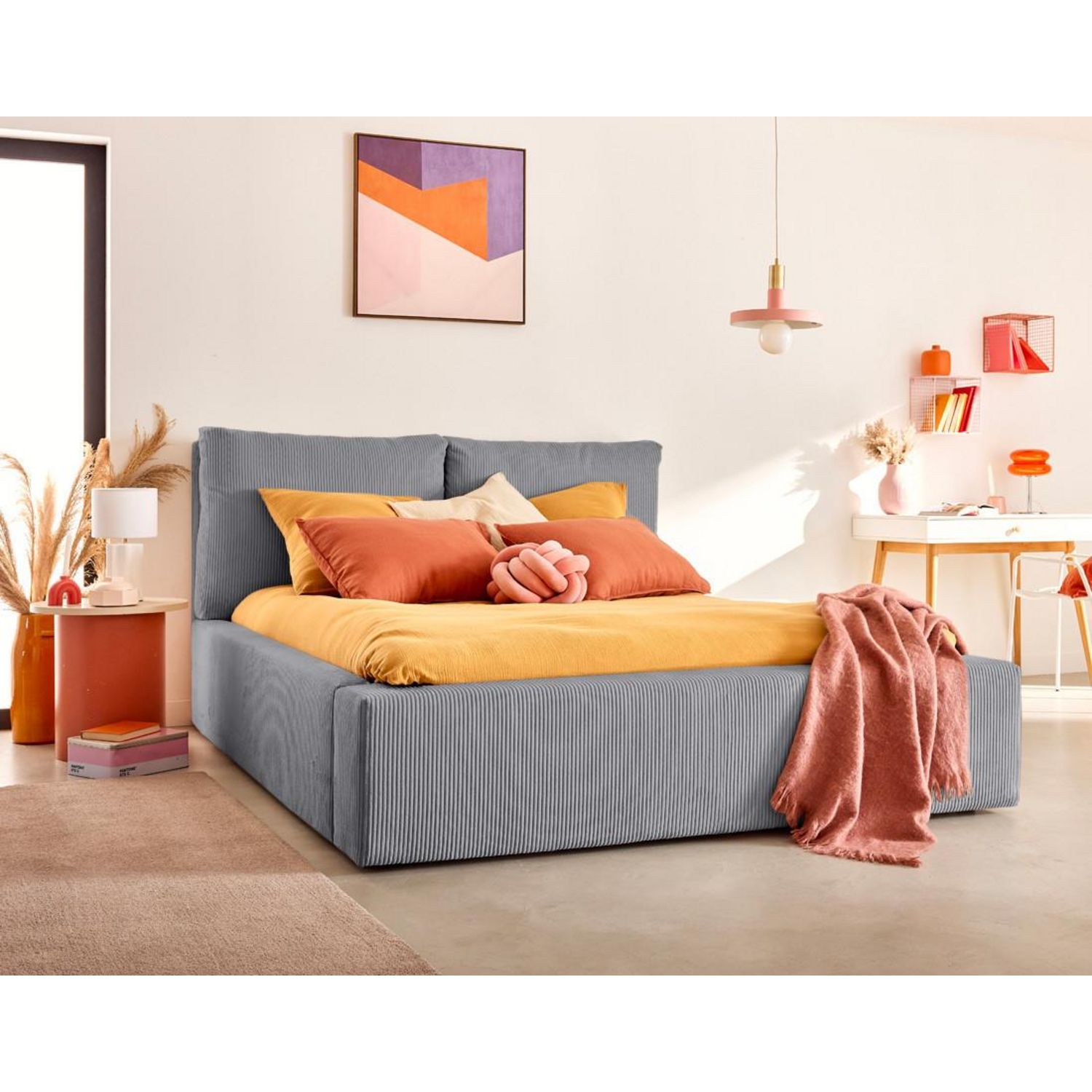 Pivoine - lit coffre - 140x190 - en velours côtelé - sommier inclus