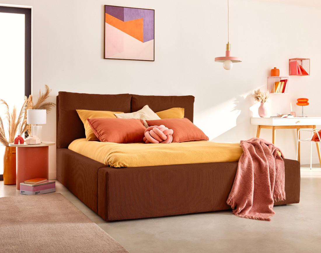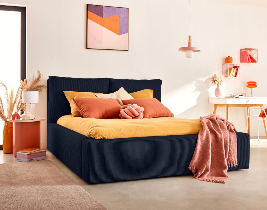 Lit Coffre Pivoine 160x200 : velours côtelé et tête de lit confortable
