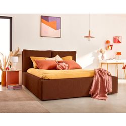 Le lit coffre Pivoine 180x200 combine à merveille design et confort, grâce à son revêtement en velours côtelé, une matière tendance qui apporte une touche de raffinement à votre espace de nuit. Ce tissu doux et texturé crée un look sophistiqué tout en ajoutant une sensation de chaleur et d'élégance à votre chambre. La tête de lit intégrée, avec son effet oreillers, renforce l'aspect cosy et offre un support agréable pour vos moments de détente, que ce soit pour lire ou simplement se reposer. Les lits Pivoine font partie de la même collection que les canapés Pivoine, offrant ainsi une qualité de fabrication irréprochable et un confort tout aussi exceptionnel.