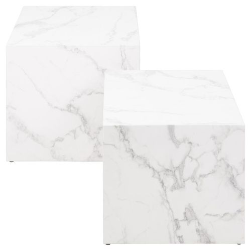 Pueblo - lot de 2 tables basses - effet marbre blanc - 58 et 50 cm