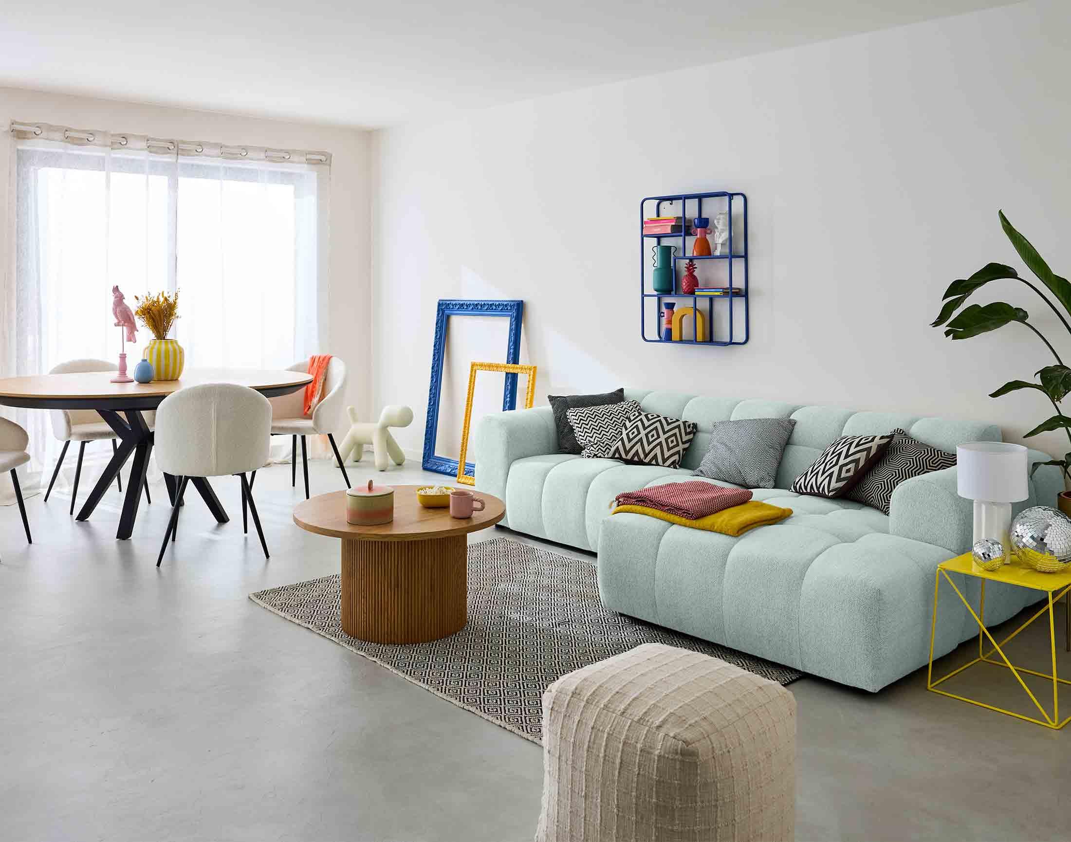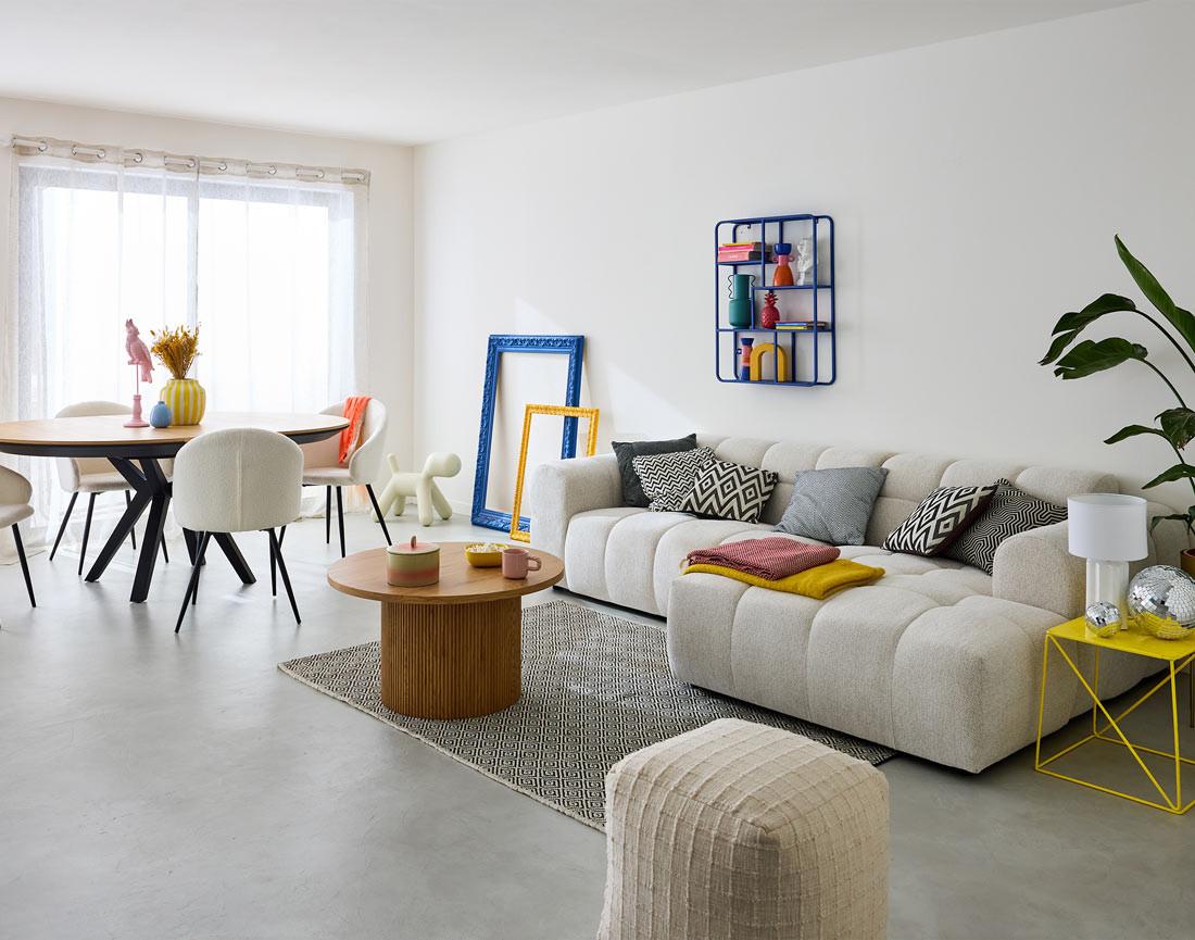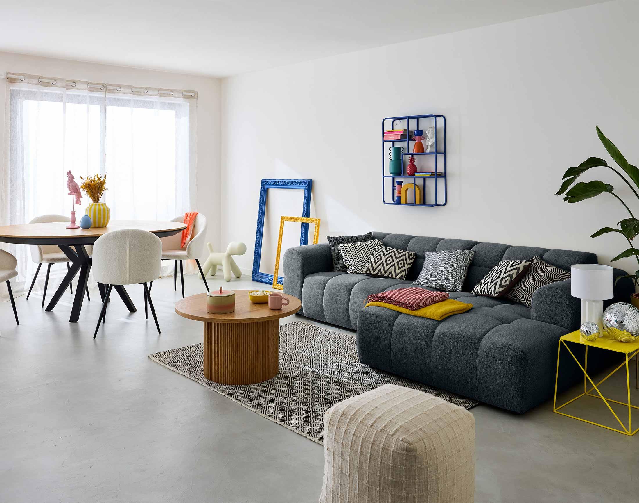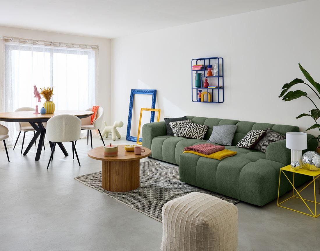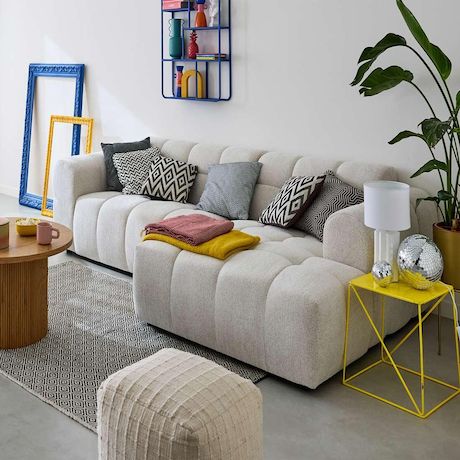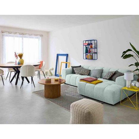 - Présentation de la collection : Le canapé d'angle 4 places Ray en tissu texturé vous offrira un confort inégalable. Grâce à sa forme organique semblable à un nuage et ses dimensions généreuses vous passerez d'agréables moments de détente.