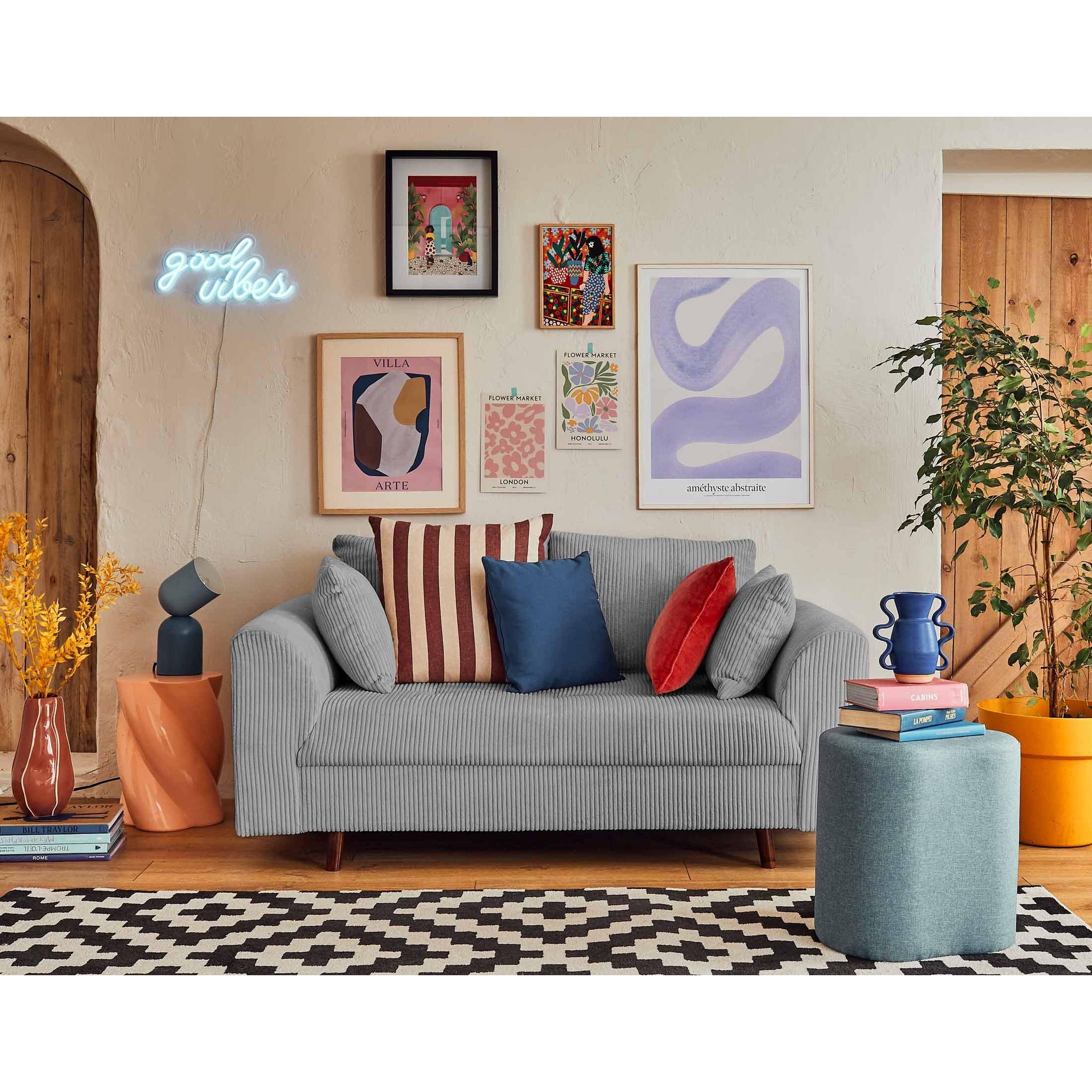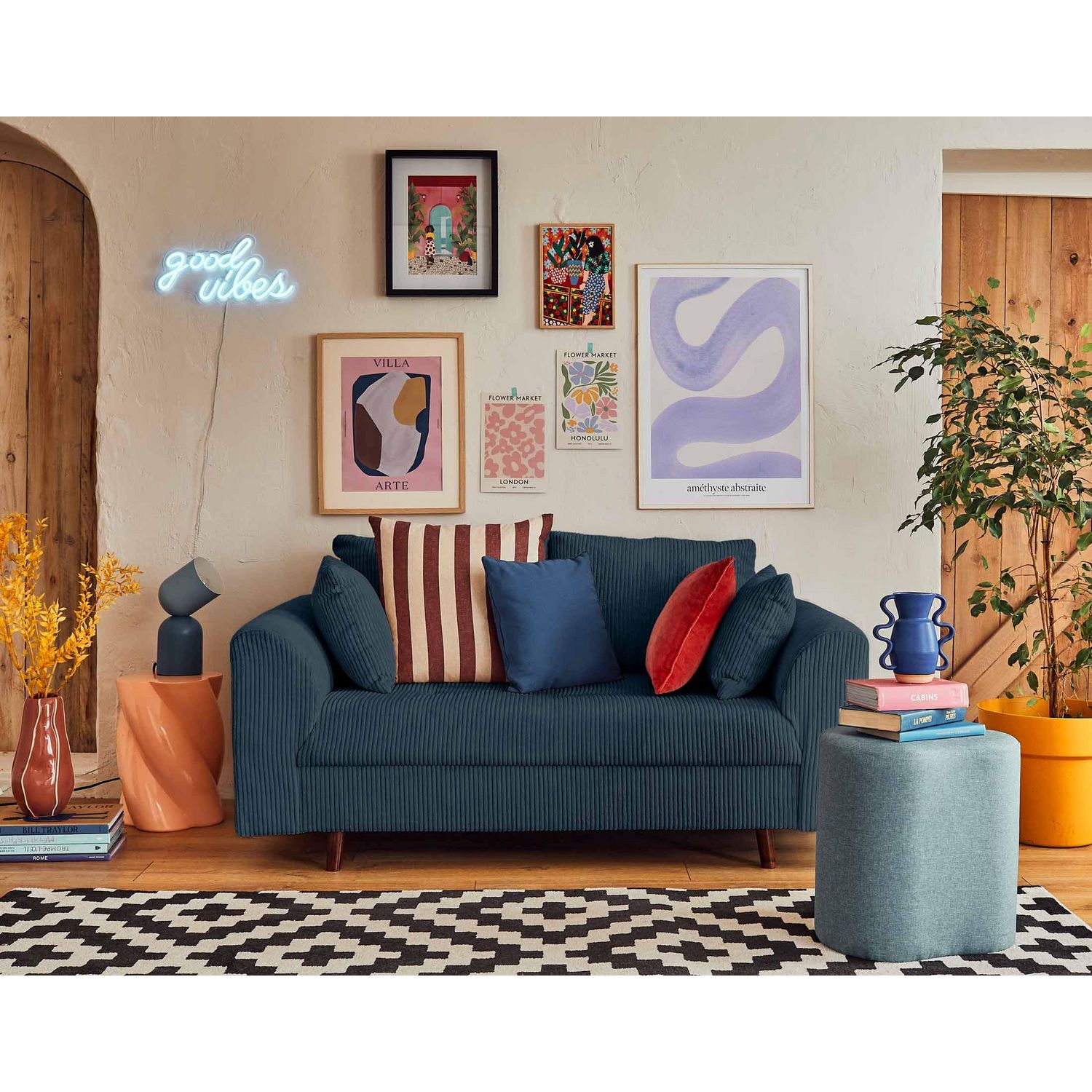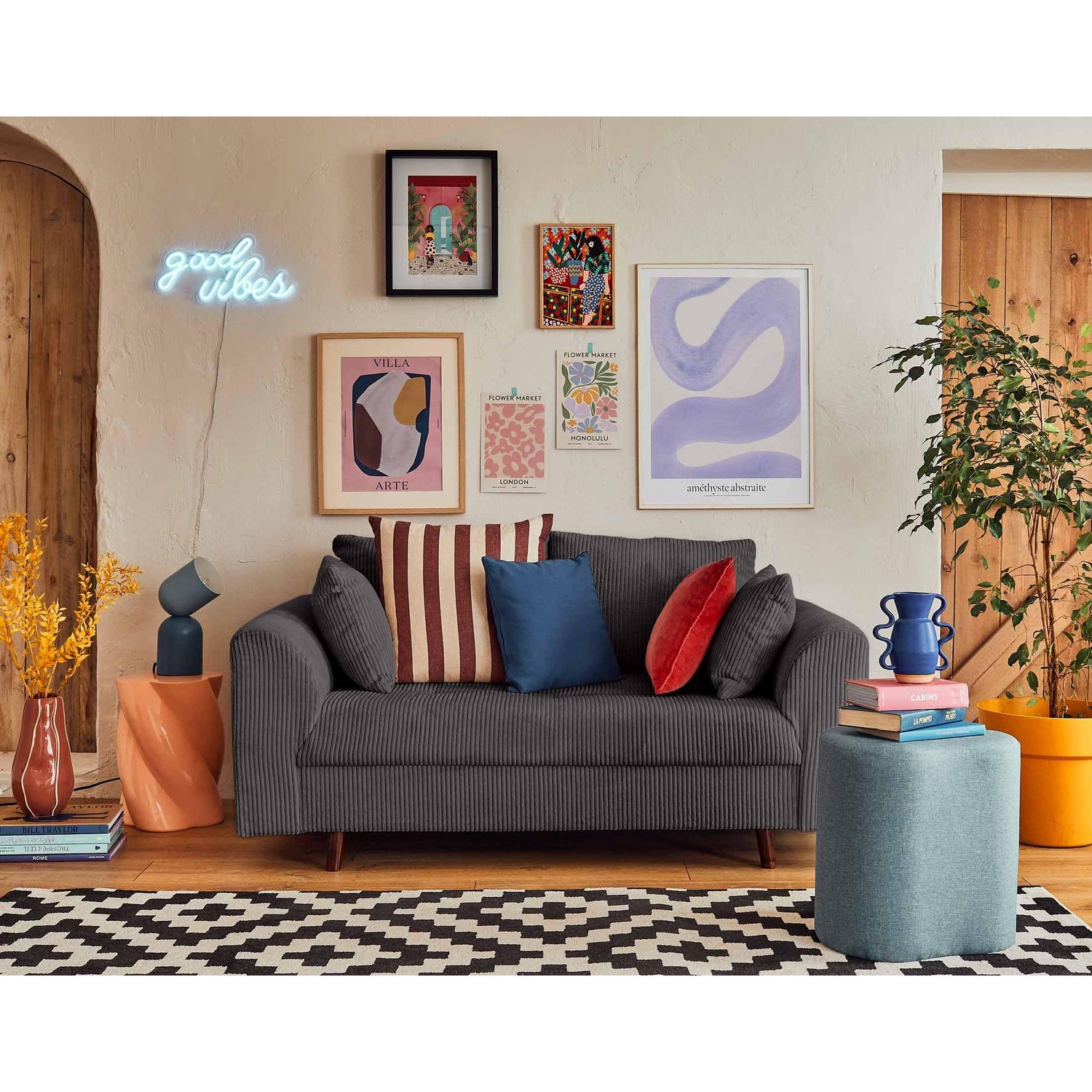 Le canapé 2 places Rune est idéal pour un intérieur aux allures modernes. En effet, il s'agit d'un canapé à l'assise capitonnée et aux pieds inclinés en bois wengé. Vous apprécierez la finesse de son design grâce à ses lignes épurées, son confort d'assise et la douceur de son revêtement en velours côtelé.
