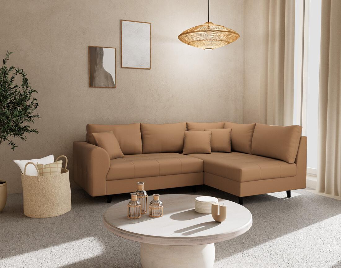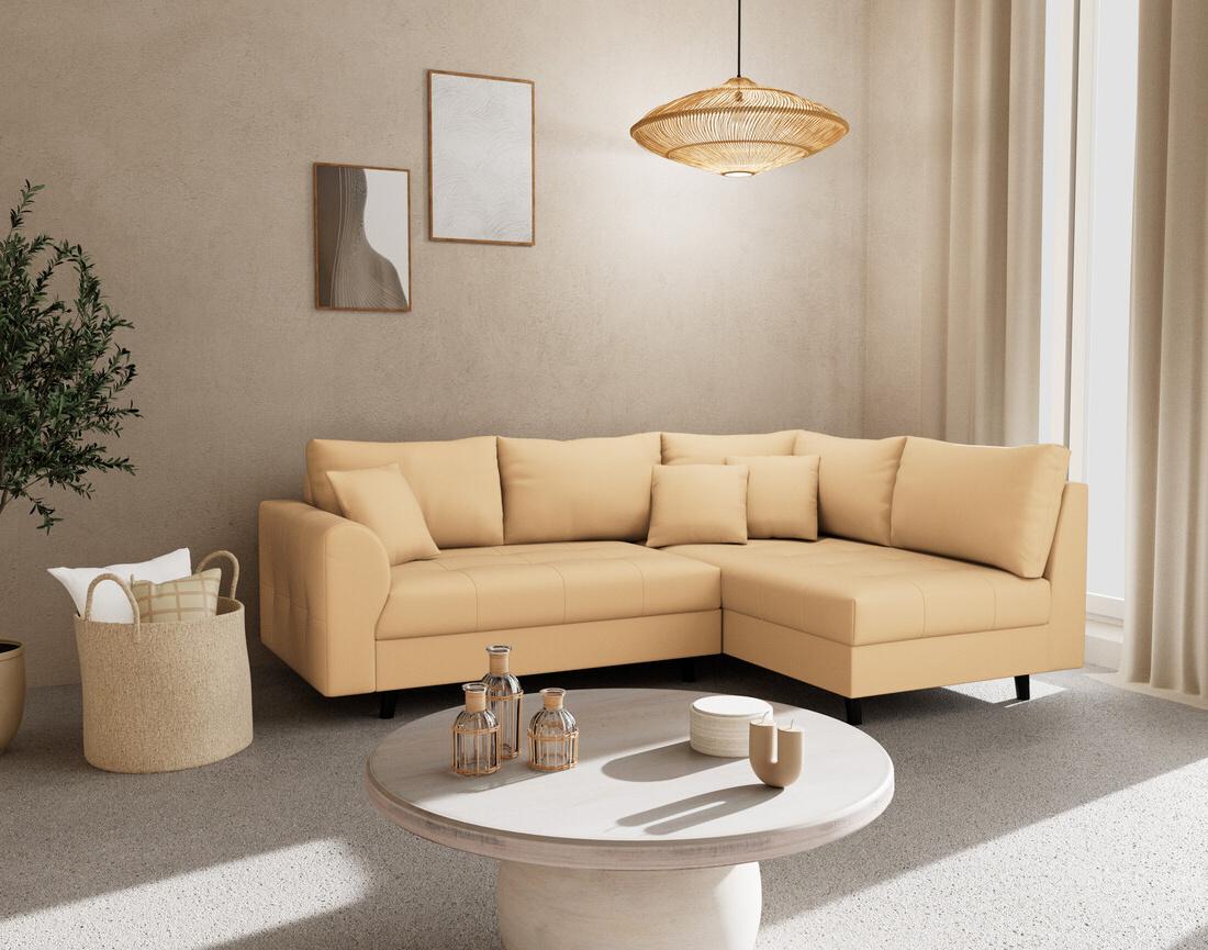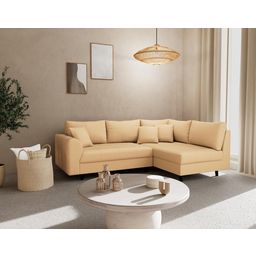 Ce canapé d'angle droit 4 places ne mise pas que sur l'apparence : son assise, conçue avec des matériaux de qualité, reste souple et confortable sans s'affaisser avec le temps. Fabriqué en Europe, Rune allie fiabilité et exigence pour accompagner votre quotidien avec élégance et durabilité.