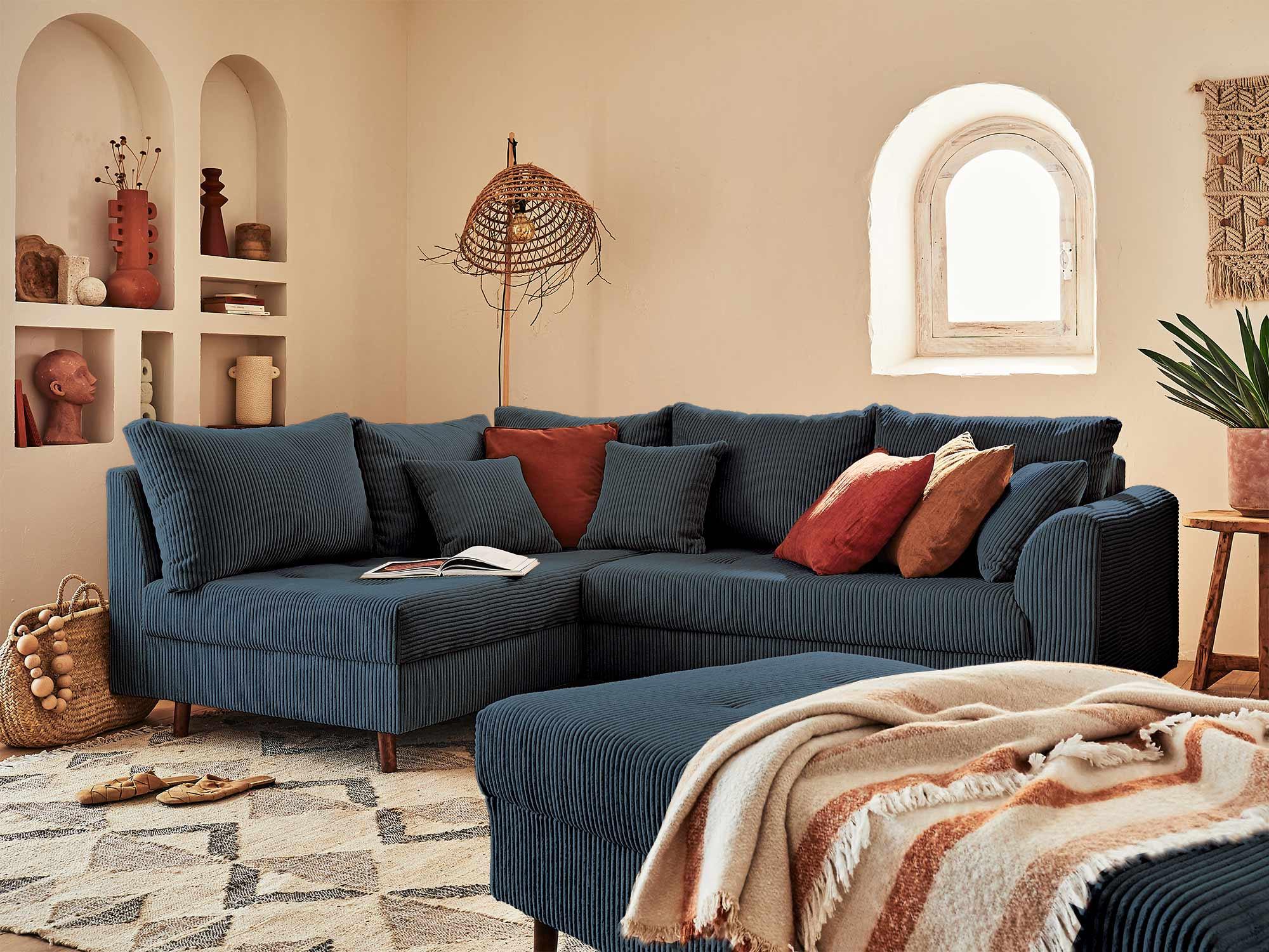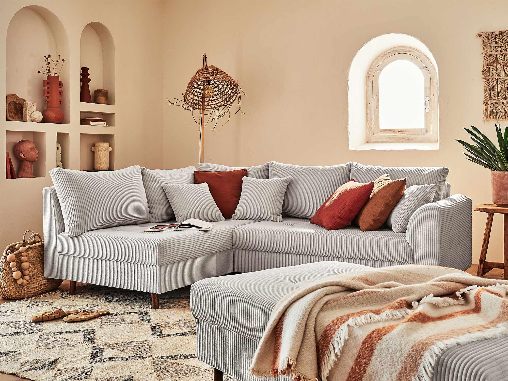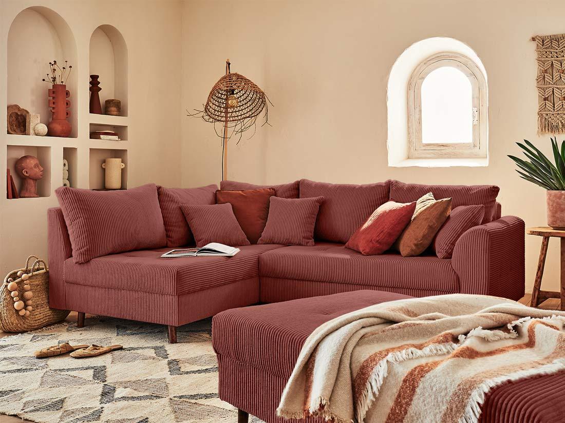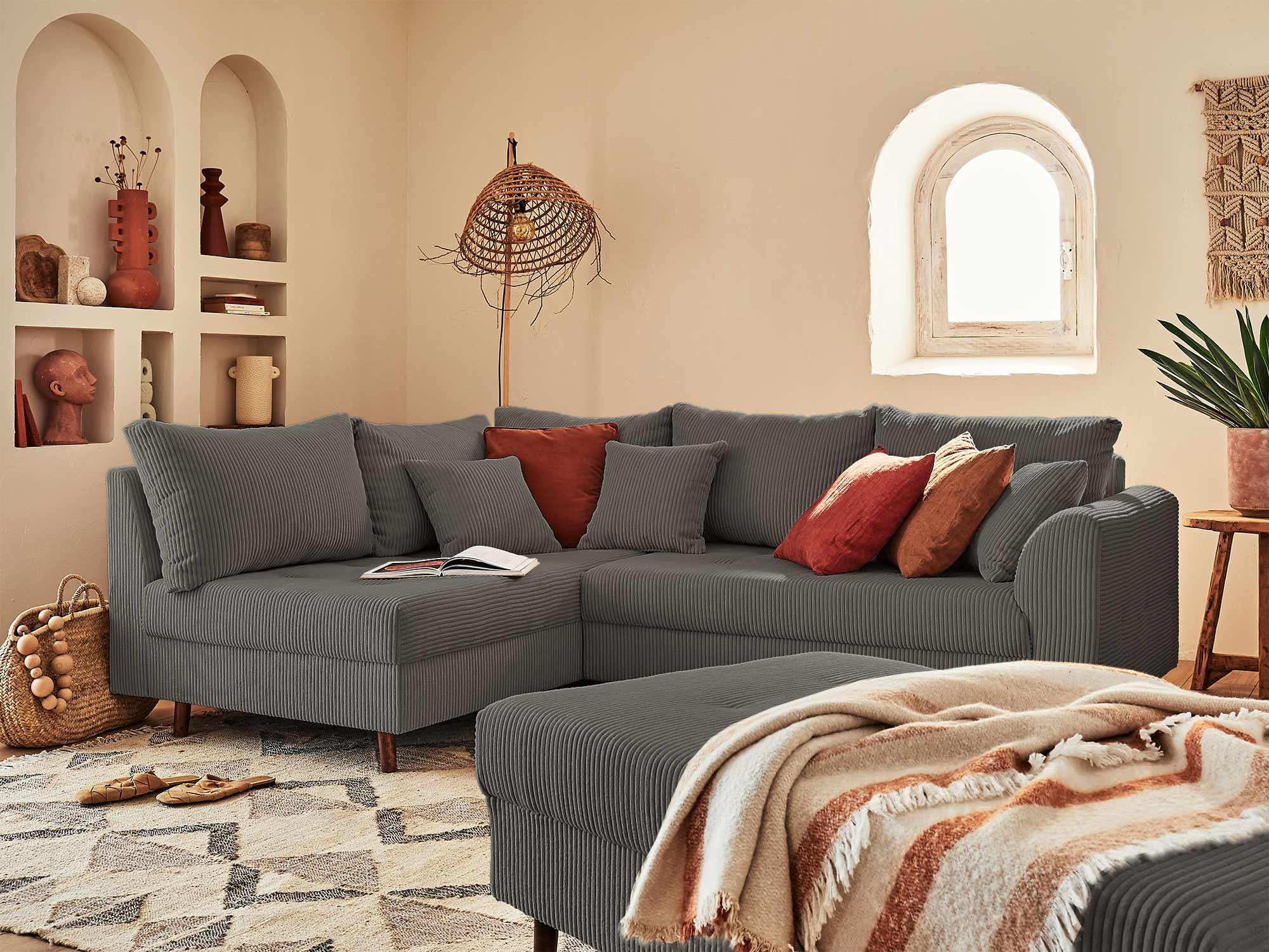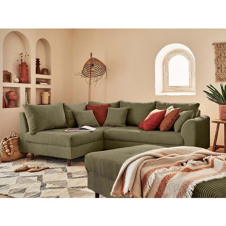 Rune - canapé d'angle gauche - 4 places - avec pouf d'appoint - en velours côtelé