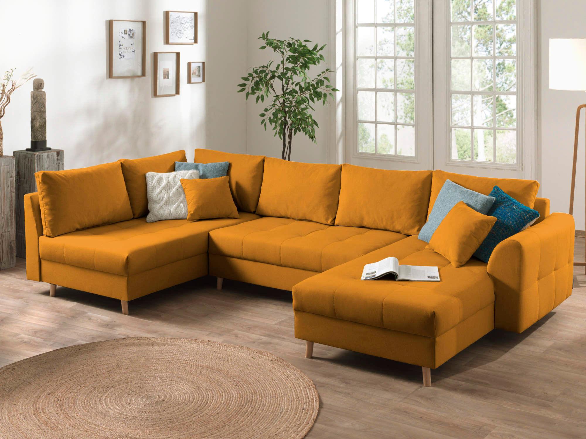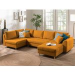Le canapé panoramique Rune prendra une grande place dans votre salon. Disponible en plusieurs coloris et grâce à ses formes épurées, il deviendra la pièce maitresse de votre salon. Ses pieds en bois, son capitonnage et son tissu au toucher doux sauront vous séduire afin de passer des moments détentes.