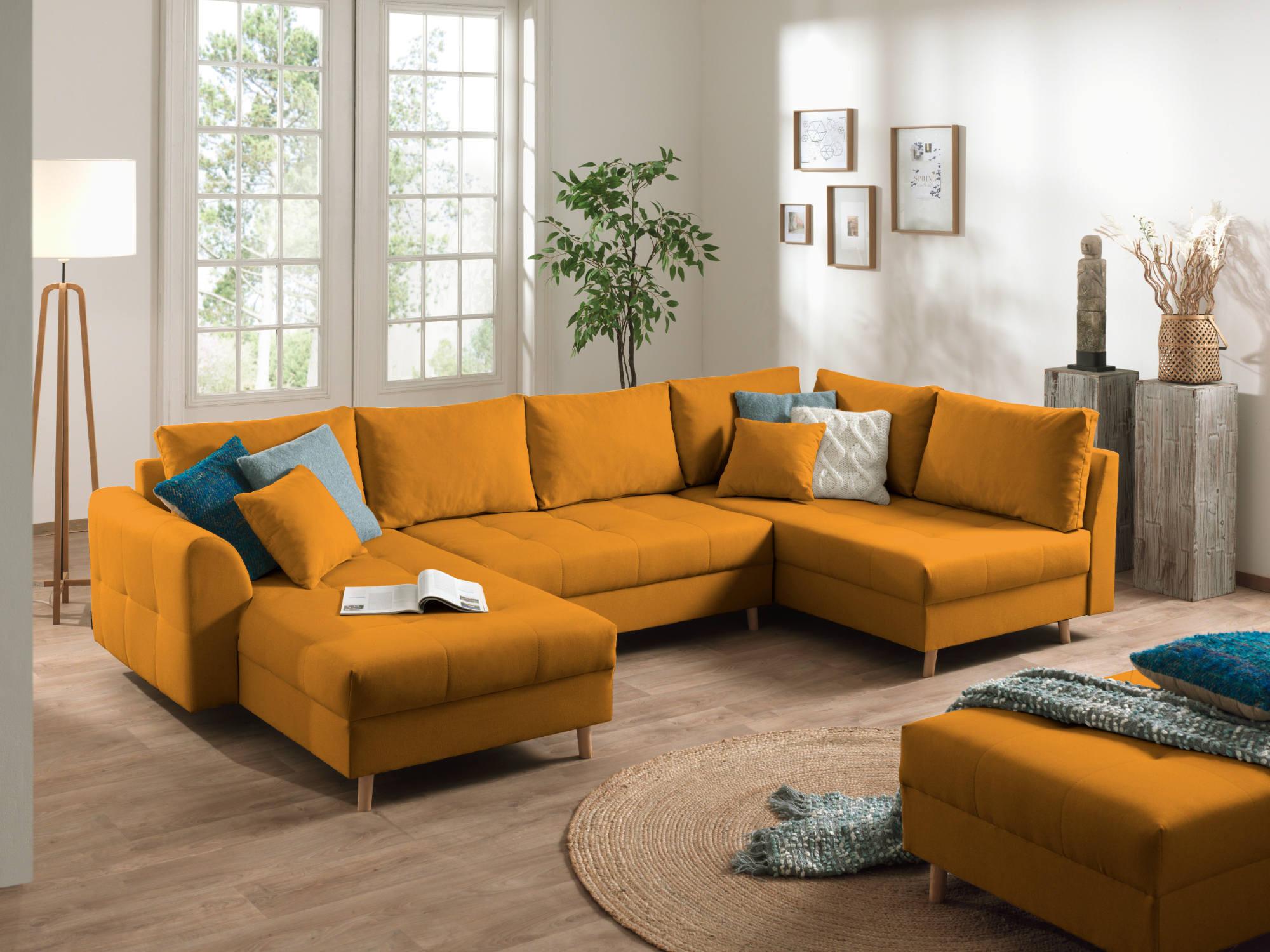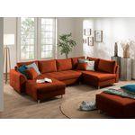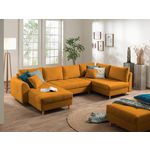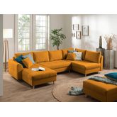 Le canapé panoramique Rune prendra une grande place dans votre salon. Disponible en plusieurs coloris et grâce à ses formes épurées, il deviendra la pièce maitresse de votre salon. Ses pieds en bois, son capitonnage et son tissu au toucher doux sauront vous séduire afin de passer des moments détentes.