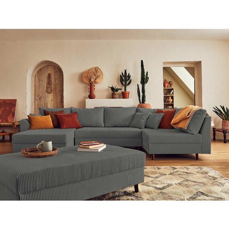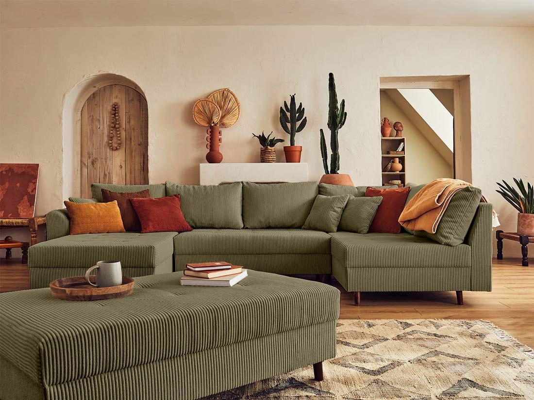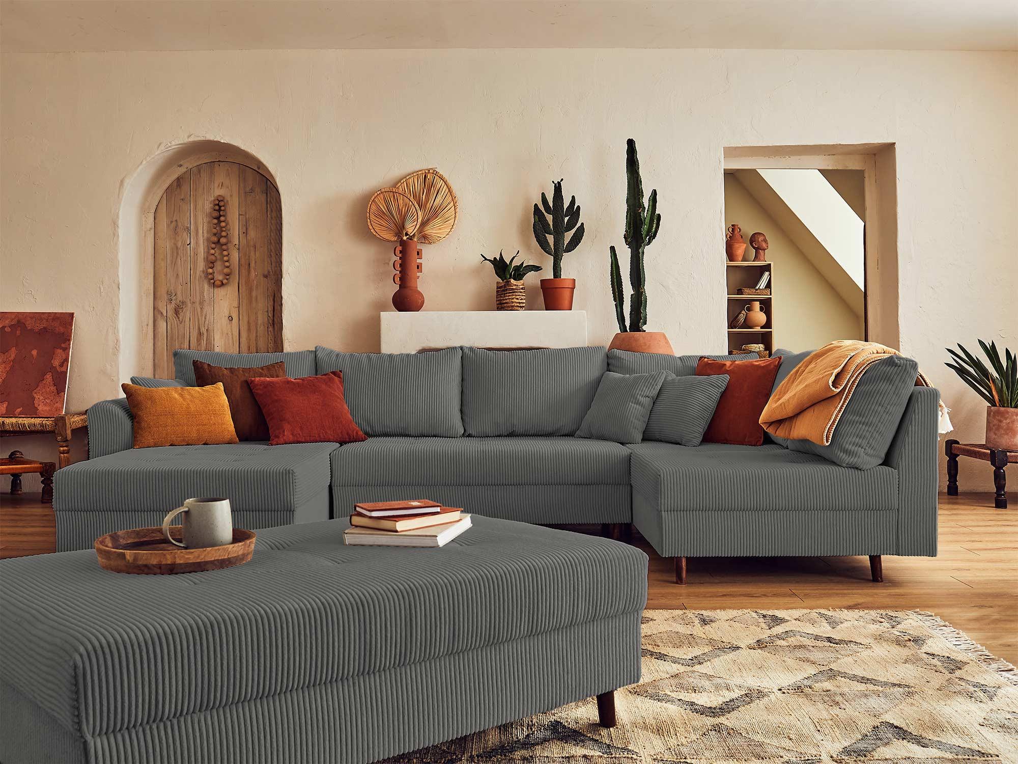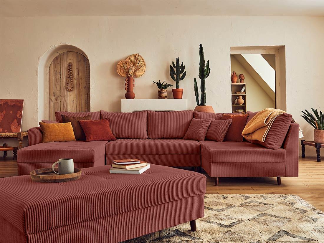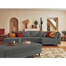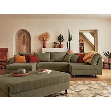 Rune - canapé panoramique d'angle droit - 7 places - avec pouf d'appoint - en velours côtelé