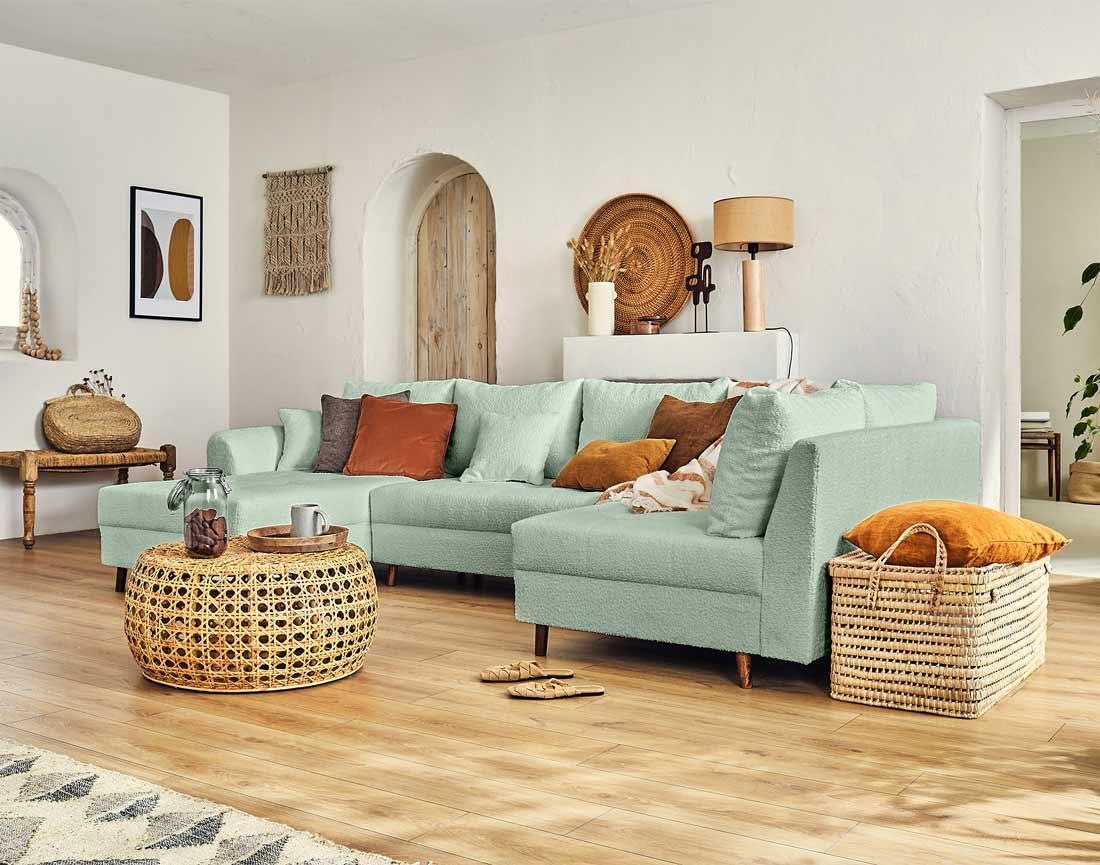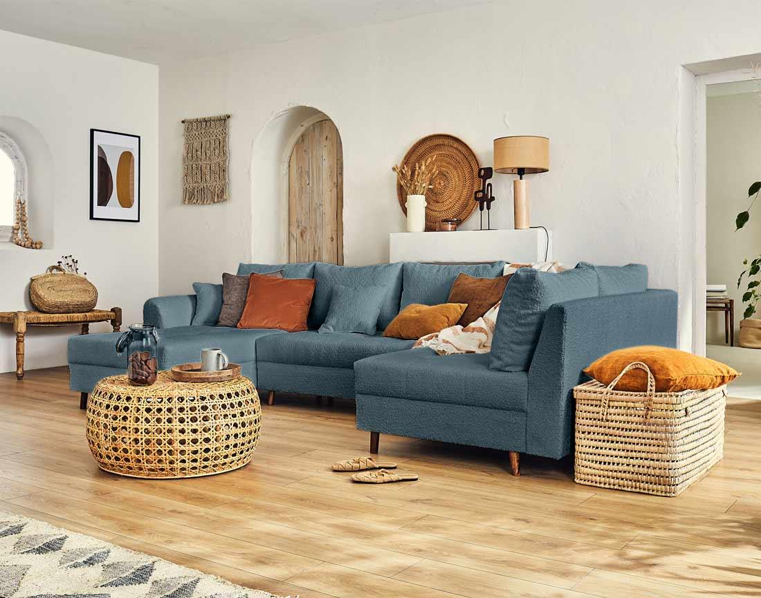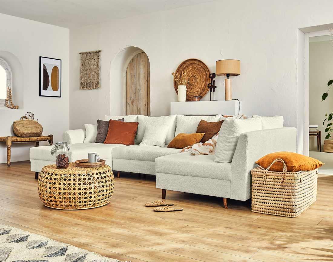 Disponible en plusieurs coloris, le canapé panoramique d'angle Rune rendra votre intérieur tendance et cocooning !