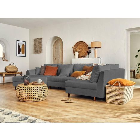 Rune - canapé panoramique d'angle droit - 7 places - en tissu bouclette