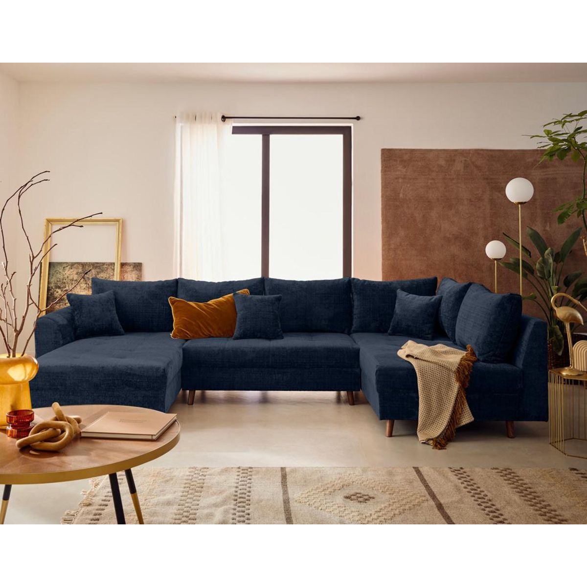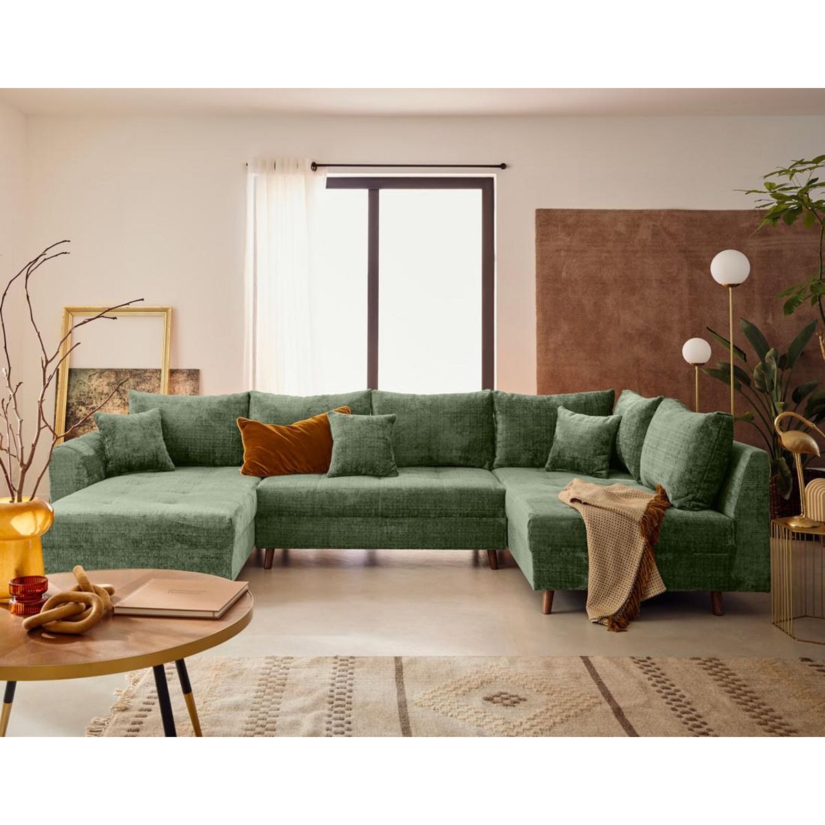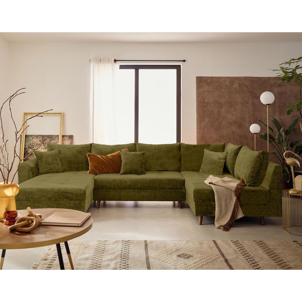 Transformez votre salon en un lieu de réception convivial et chaleureux. Le canapé Rune est un modèle panoramique, à angle droit, conçu pour accueillir confortablement jusqu'à 7 personnes. Son design est imposant, mais très raffiné. Il s'adapte parfaitement aux grandes pièces dans lesquelles il vient structurer l'espace en délimitant des zones cosy. Son revêtement est en velours texturé, très doux au toucher. Dans un intérieur contemporain, il devient rapidement la pièce maîtresse. Décliné en une large gamme de coloris tendance comme le bleu, le vert, le prune, le beige, le gris anthracite, le vert olive, le vert sauge, le rouille et le gris, Rune s'intègre aisément dans tous les univers décoratifs. Associez-le à des teintes naturelles comme le bois clair pour le faire ressortir encore davantage. Ou bien, mixez-le avec d'autres couleurs fortes pour un salon qui vous ressemble.