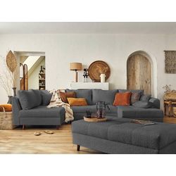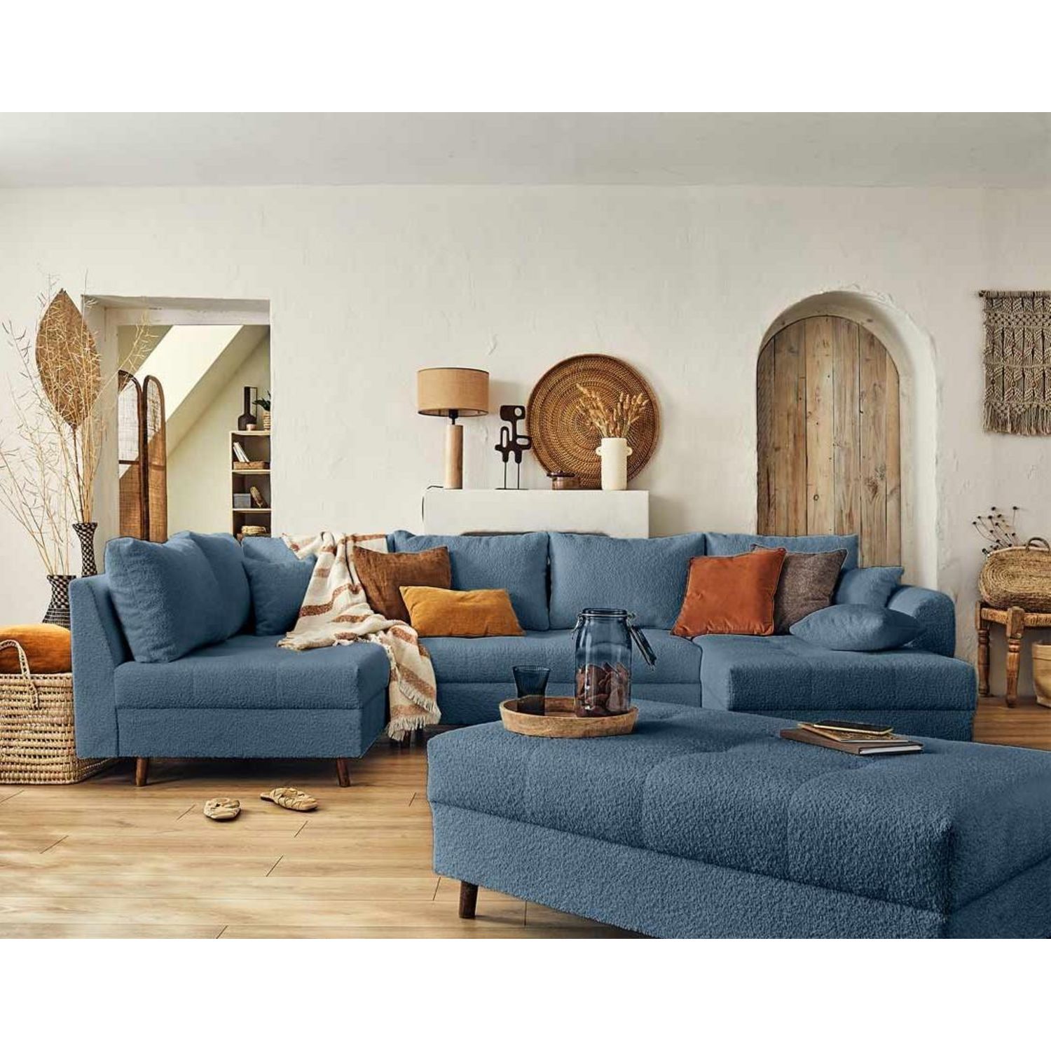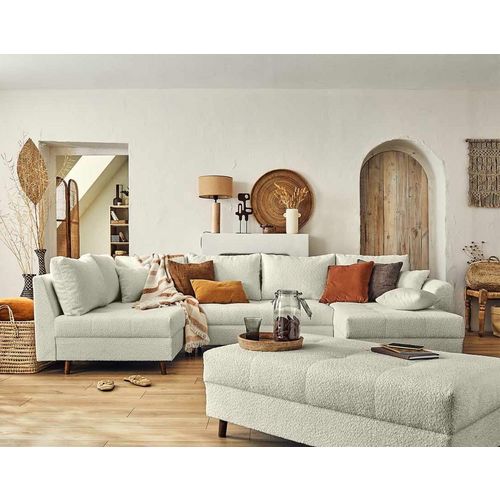 Rune - canapé panoramique d'angle gauche - 7 places - avec pouf d'appoint - en tissu bouclette