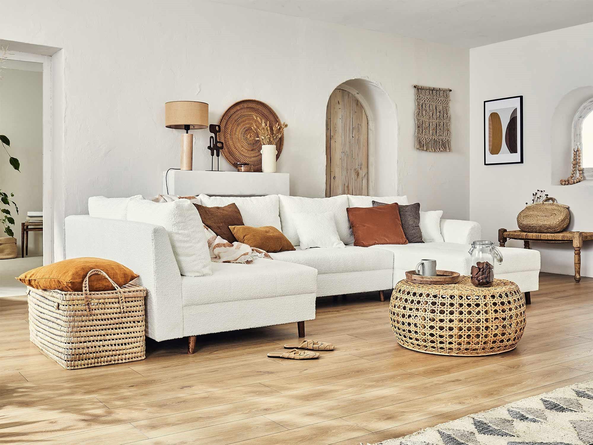 Disponible en plusieurs coloris, le canapé panoramique d'angle Rune rendra votre intérieur tendance et cocooning !