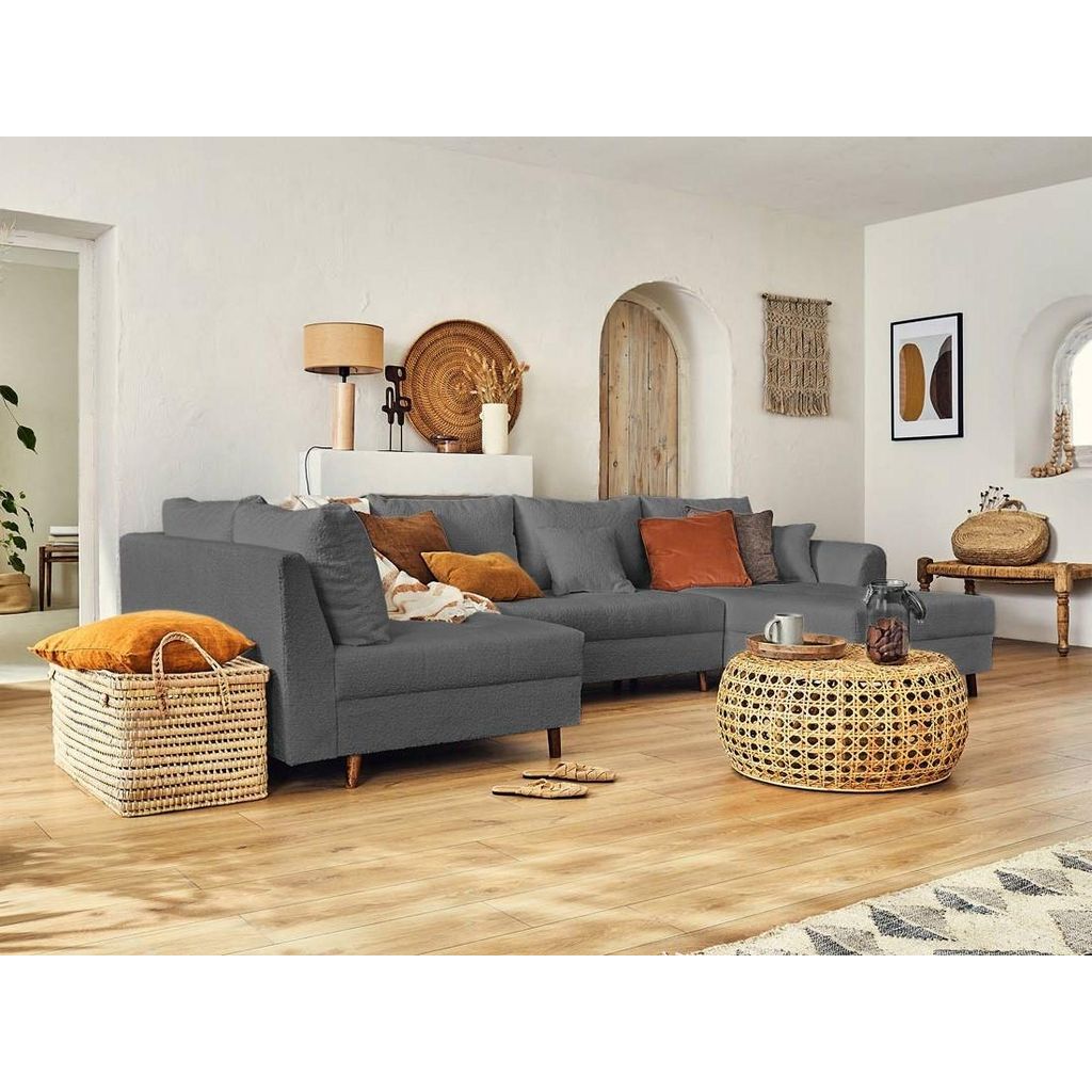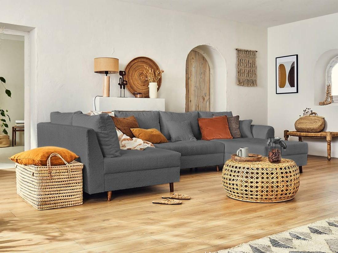Rune - canapé panoramique d'angle gauche - 7 places - en tissu bouclette
