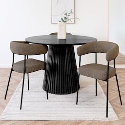 Pensées pour être confortables, ces chaises offrent une assise agréable grâce à leur tissu texturé facile à entretenir. Les pieds en métal assurent stabilité et durabilité, tandis que le bois certifié FSC® 100% garantit un mobilier de qualité, responsable et durable.