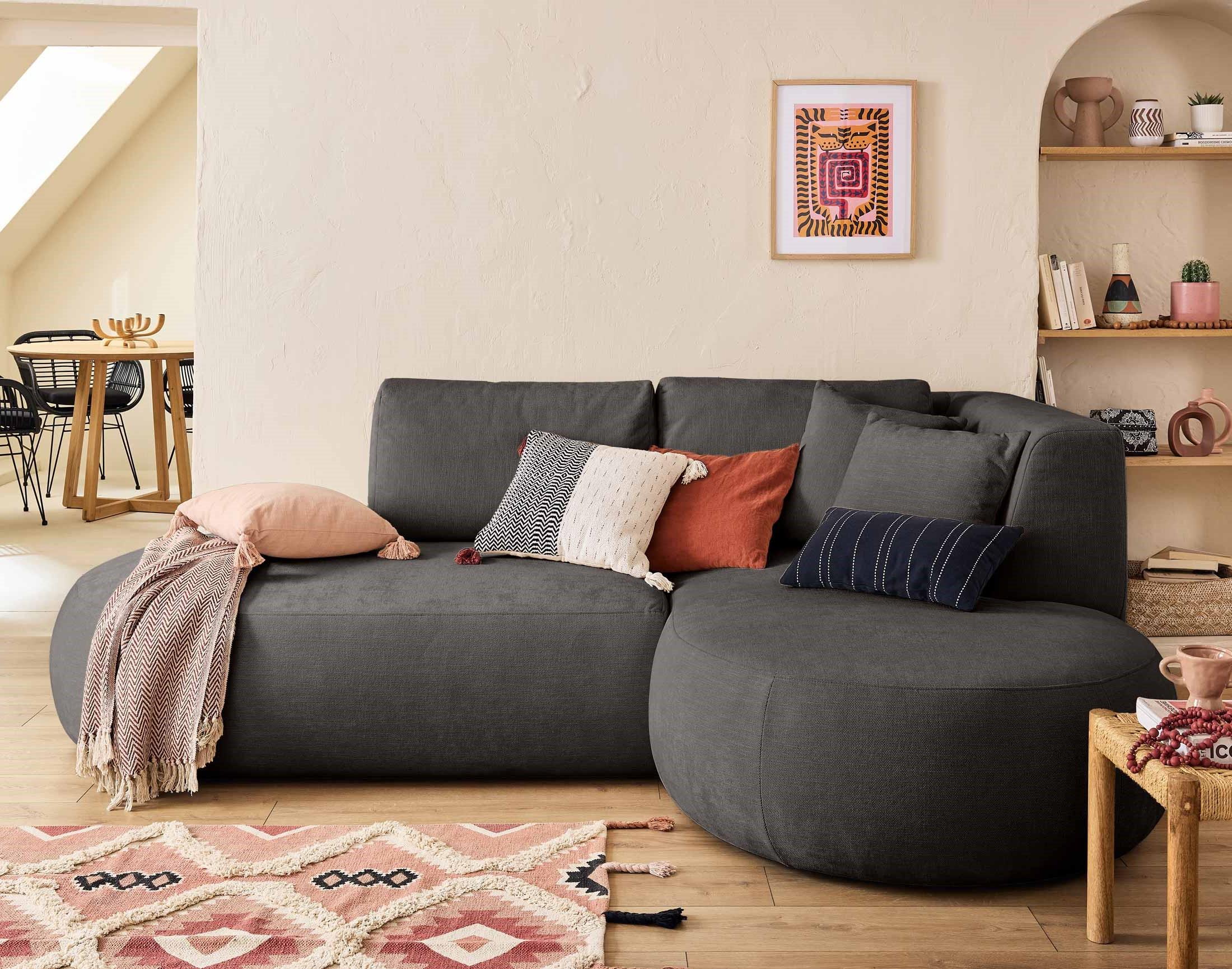 Plongez dans un univers de confort et de raffinement avec le canapé d'angle droit Santorini, une pièce maîtresse qui révolutionne votre salon. Son design ovale unique se démarque des canapés traditionnels, apportant une touche de modernité à votre intérieur. Ses lignes épurées et son élégance intemporelle en font un véritable chef-d'œuvre d'ameublement.