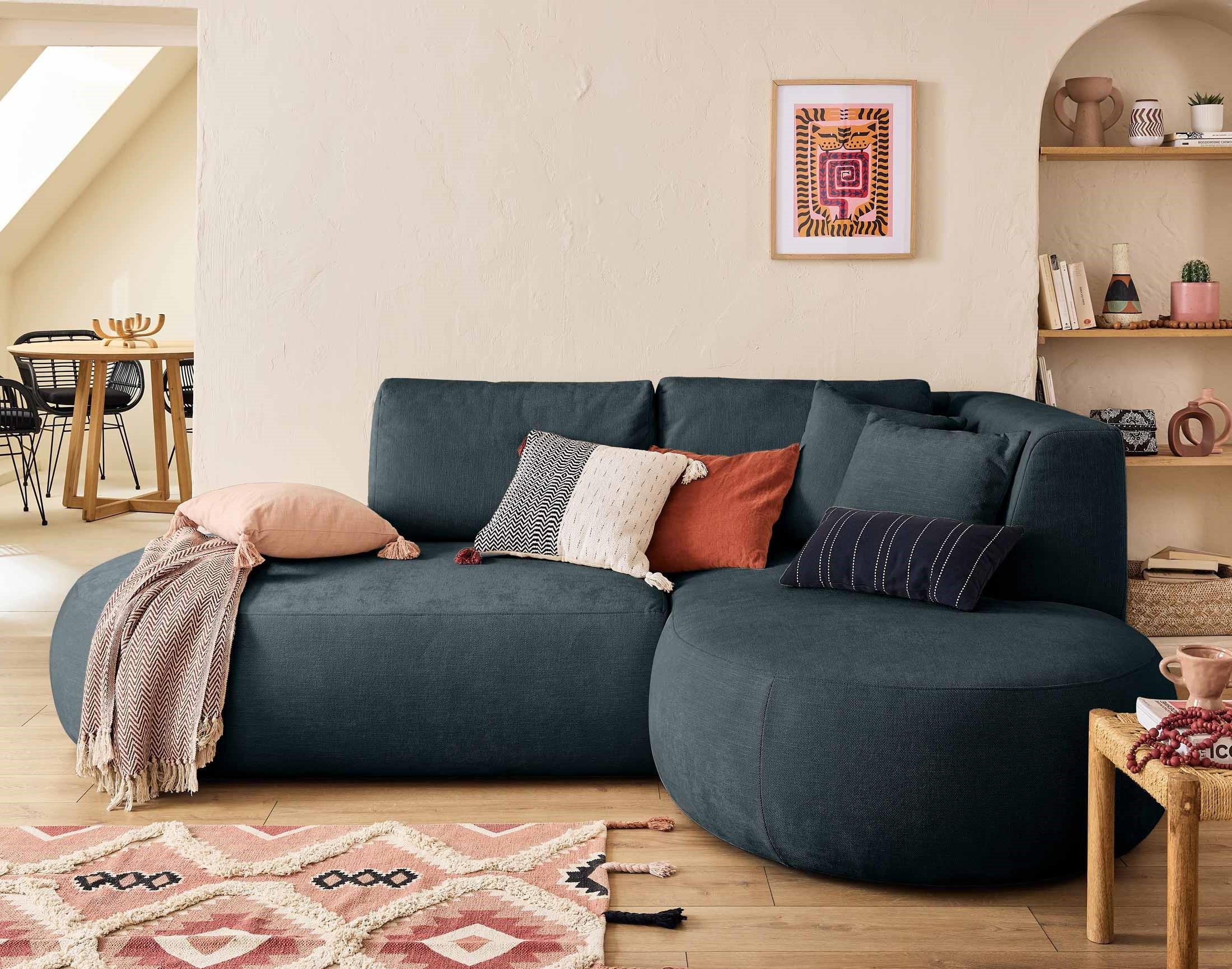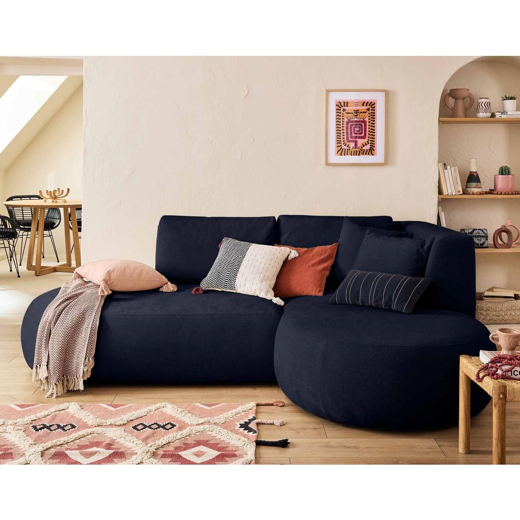 Plongez dans un univers de confort et de raffinement avec le canapé d'angle droit avec pouf Santorini, une pièce maîtresse qui révolutionne votre salon. Son design ovale unique se démarque des canapés traditionnels, apportant une touche de modernité à votre intérieur. Ses lignes épurées et son élégance intemporelle en font un véritable chef-d'œuvre d'ameublement.