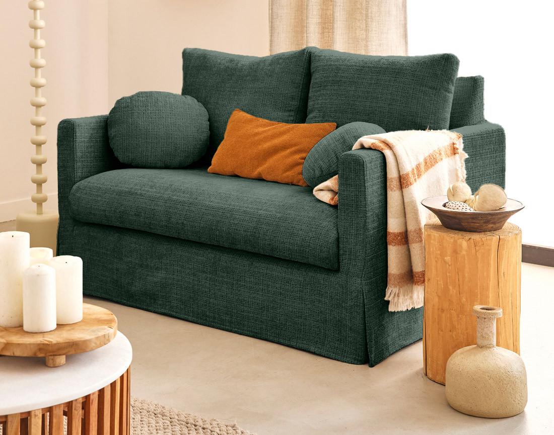 Son revêtement en velours texturé donne de la chaleur à votre espace de vie. C'est une assise cocooning par excellence, dans laquelle on a envie de regarder un film, de discuter ou de lire un livre. Mais pour celles et ceux qui aiment changer régulièrement de décoration, nous proposons également des jeux de textures et de couleurs avec plein d'options différentes de housses. Le canapé étant entièrement déhoussable, vous pouvez vous amuser autant que vous le souhaitez sans jamais avoir à racheter un autre canapé. Choisissez parmi une gamme de coloris tendances, comme le beige, le bleu, le vert, le vert olive, le vert sauge, le prune, le gris et le gris anthracite, pour personnaliser votre espace selon vos goûts. La housse est aussi facilement nettoyable en machine, pour un meuble toujours accueillant et sécurisant.