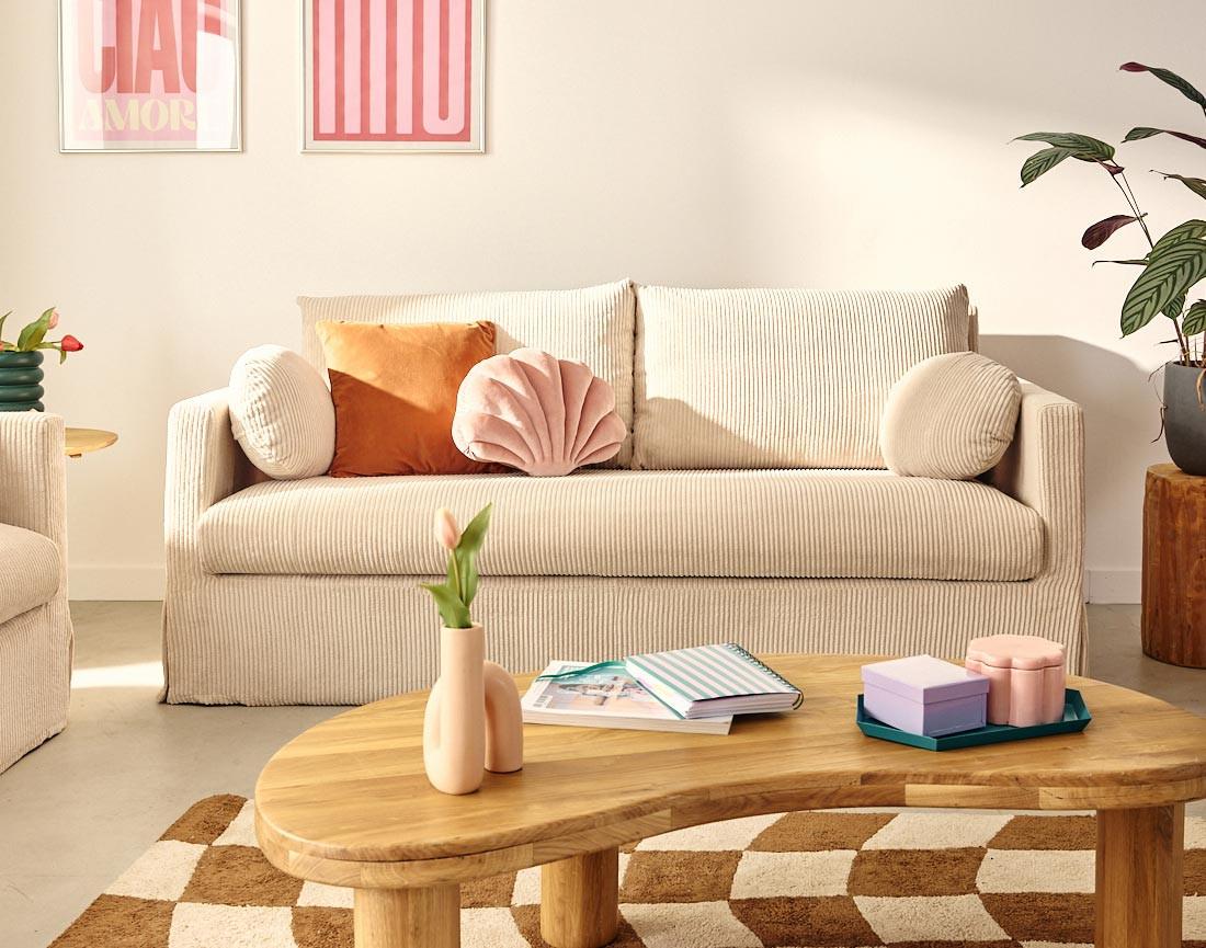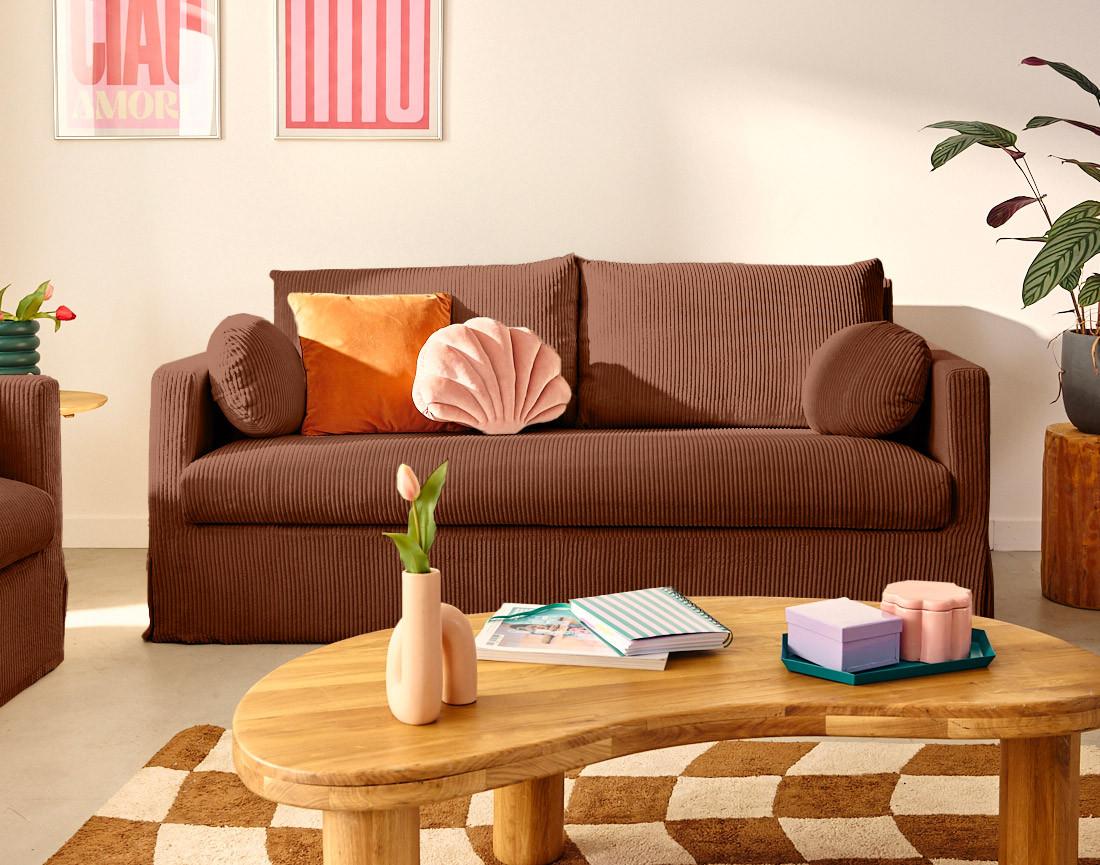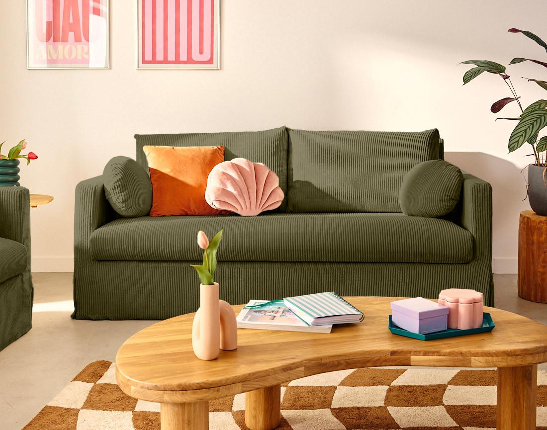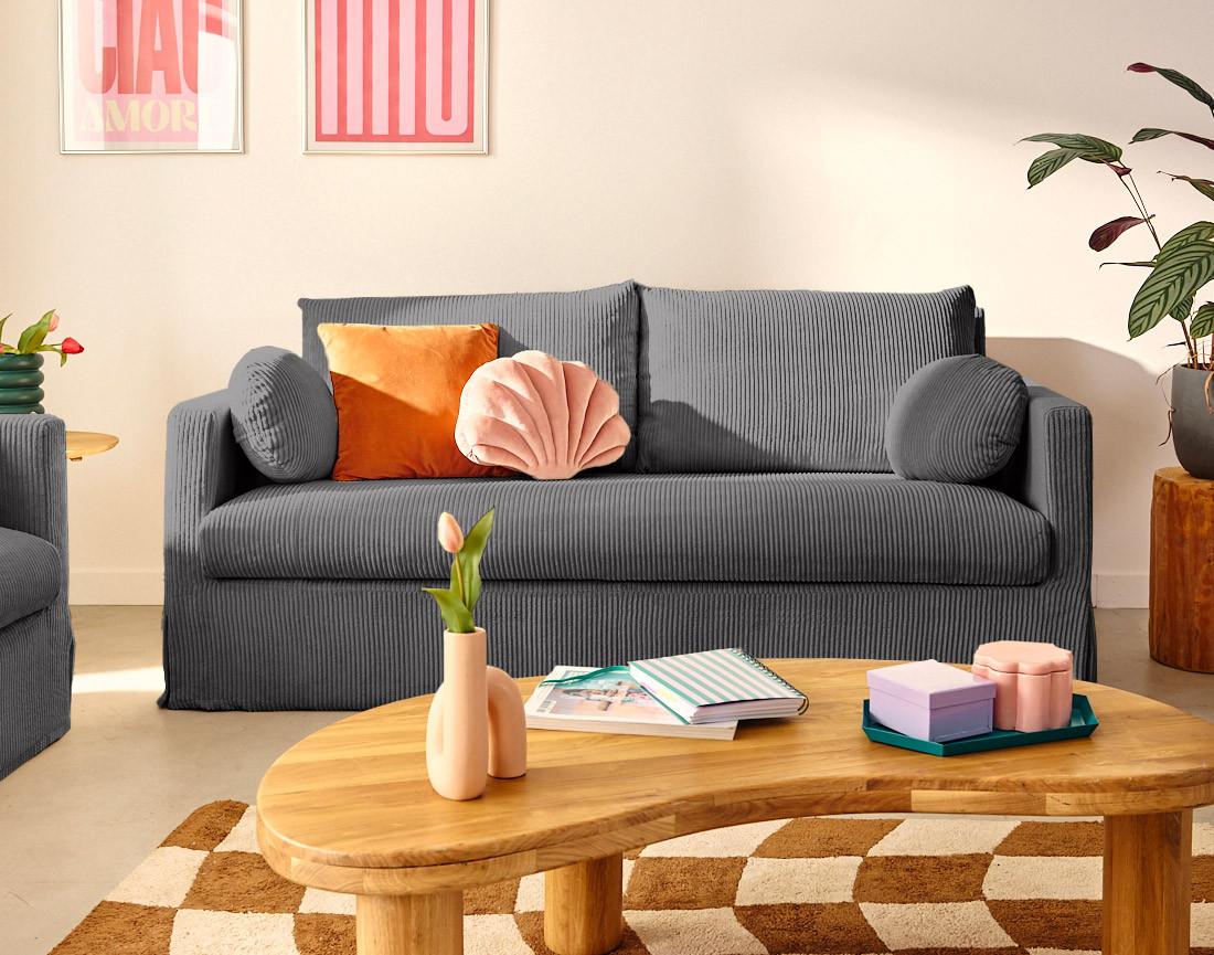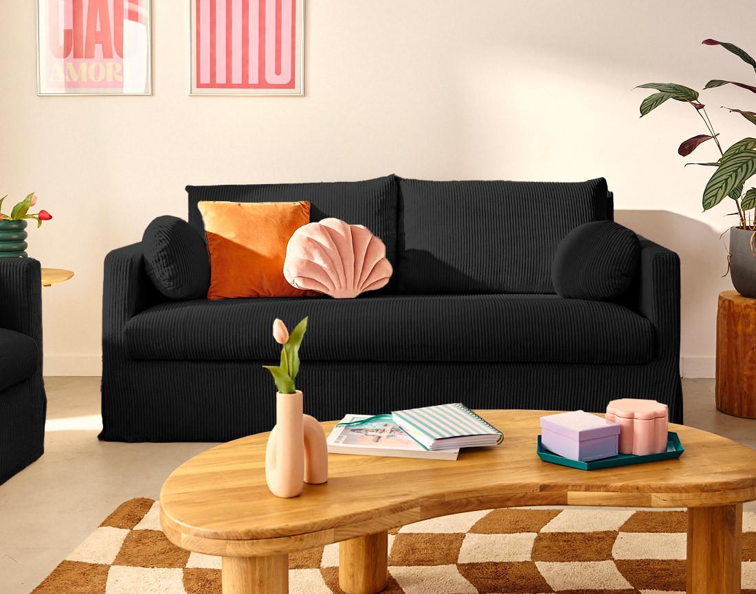 Serena - canapé droit déhoussable 3 places en velours côtelé